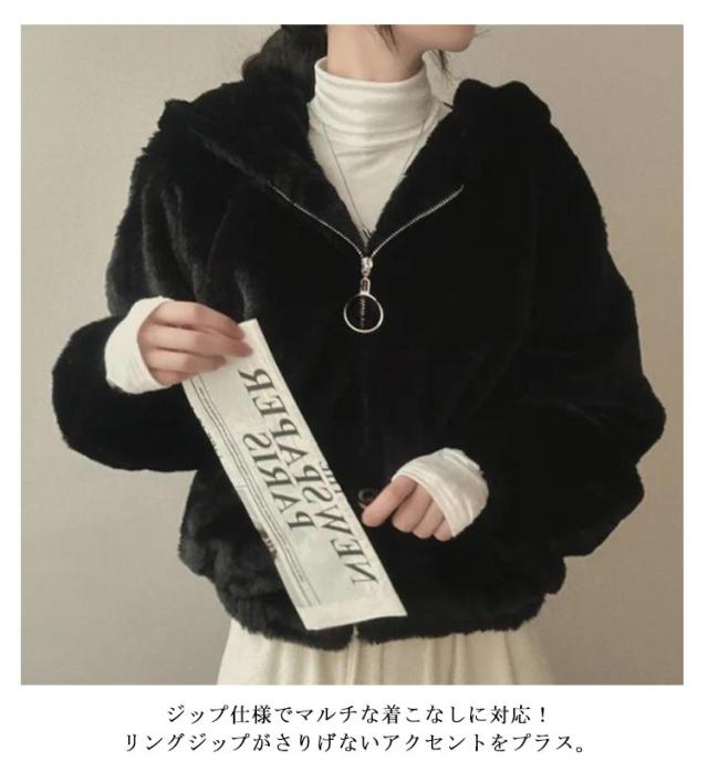 | ボリューム感のあるフードとオーバーサイズシルエットがアクセントのパーカーです。 ふわふわのファー素材は華やかで温かみのある印象に。柔らかく暖かい素材で、肌触りも抜群。 ジップ仕様でマルチな着こなしに対応!リングジップがさりげないアクセントをプラス。 コーディネートに取り入れるだけで、シーズンムードが高まるスタイリングに。 季節の変わり目のライトアウターとしても重宝すること間違いなし。 女性らしい魅力と可愛さを演出でき、暖かさと防寒性も叶える大活躍の一枚です。 | |