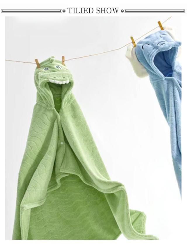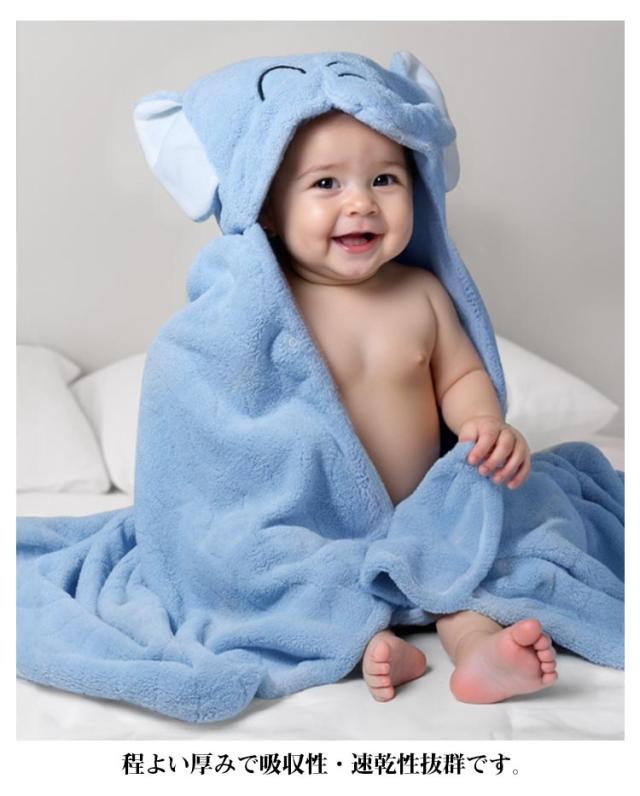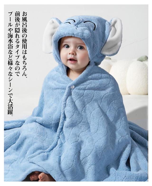 113cm×78cm バスタオル こども ボタン付き バスポンチョ ベビー 子供用 バスポンチョ ベビーバスローブ 恐竜 ベビーバスローブ 可愛い 赤ちゃん プール 速乾 タオル お風呂 子供服 象 兎