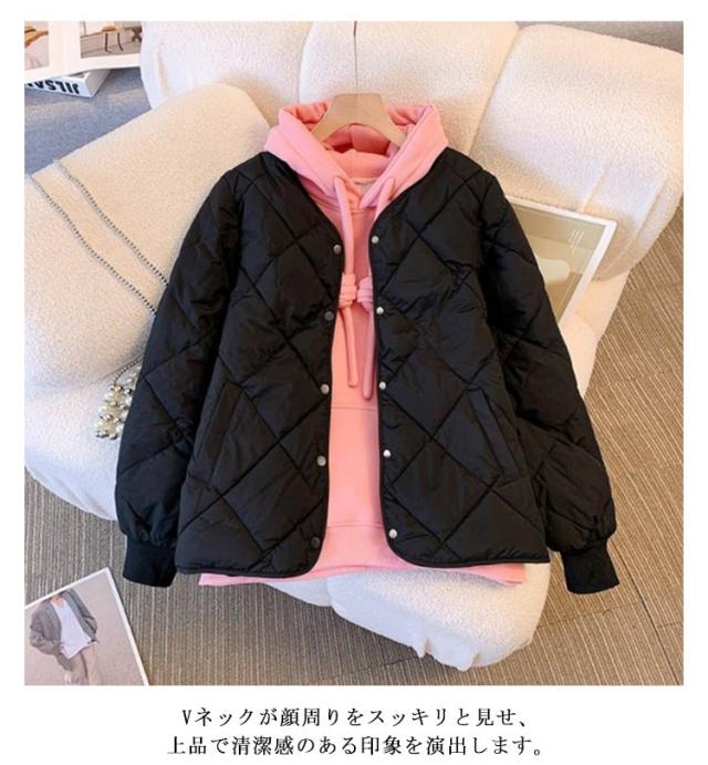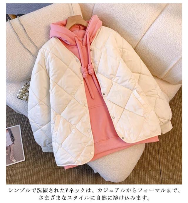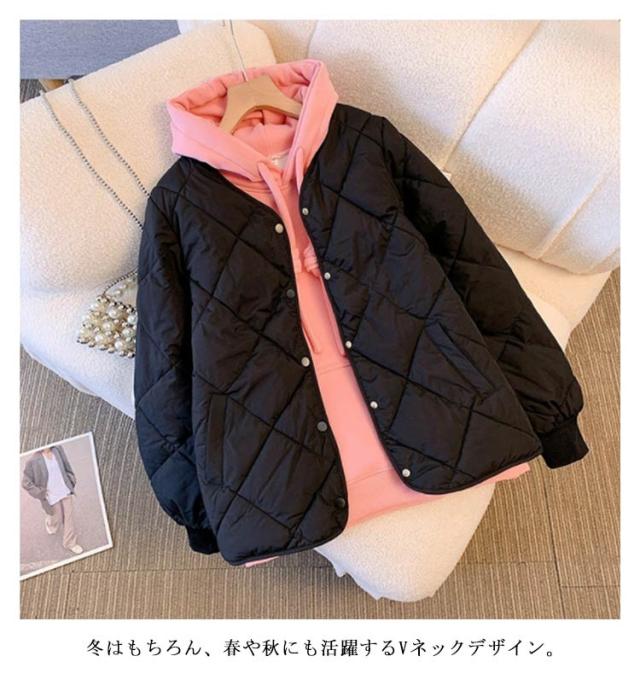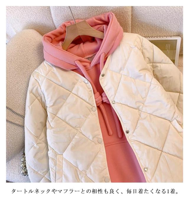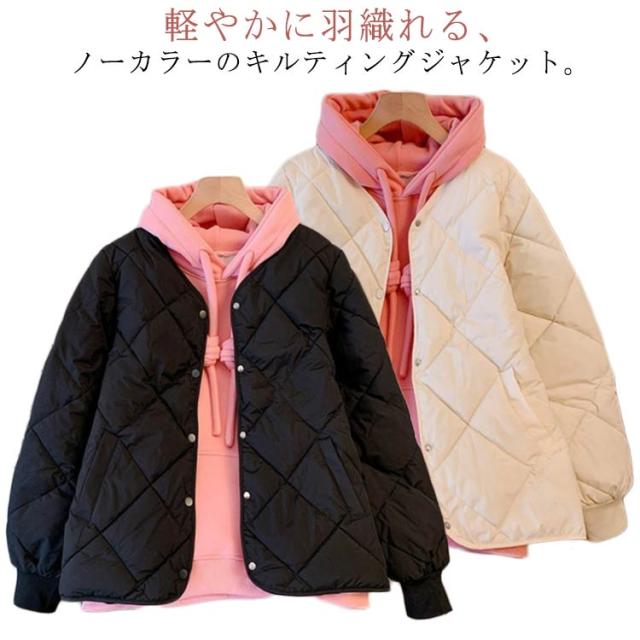 中綿 ジャケット コート コート 羽織り 上着 長袖 秋 アウター 春 キルティングジャケット ノーカラー 冬 保温 ポケット付き 無地