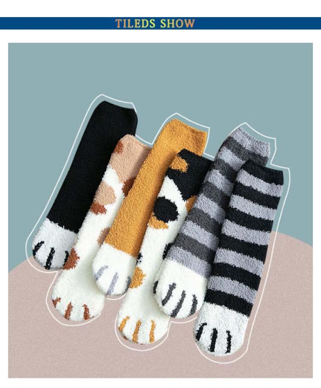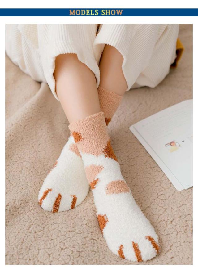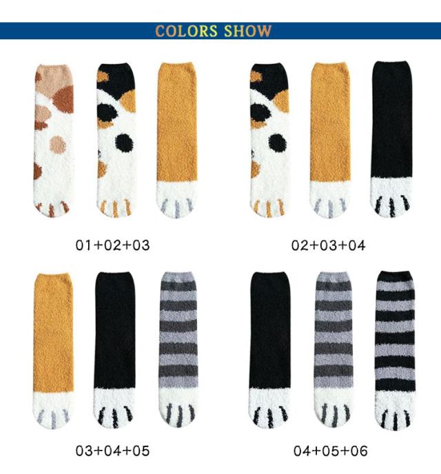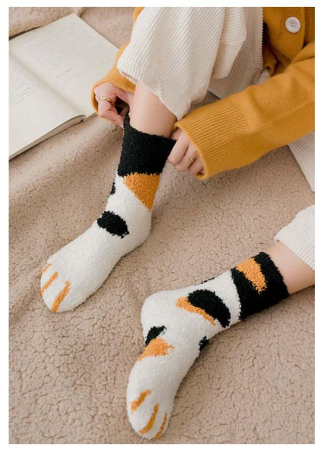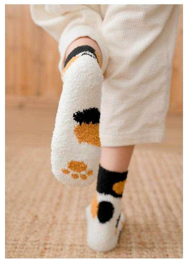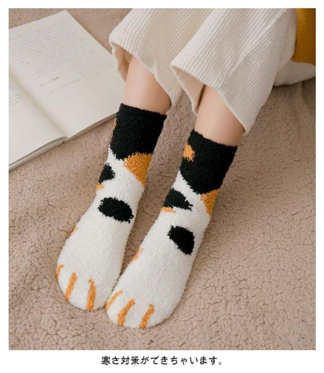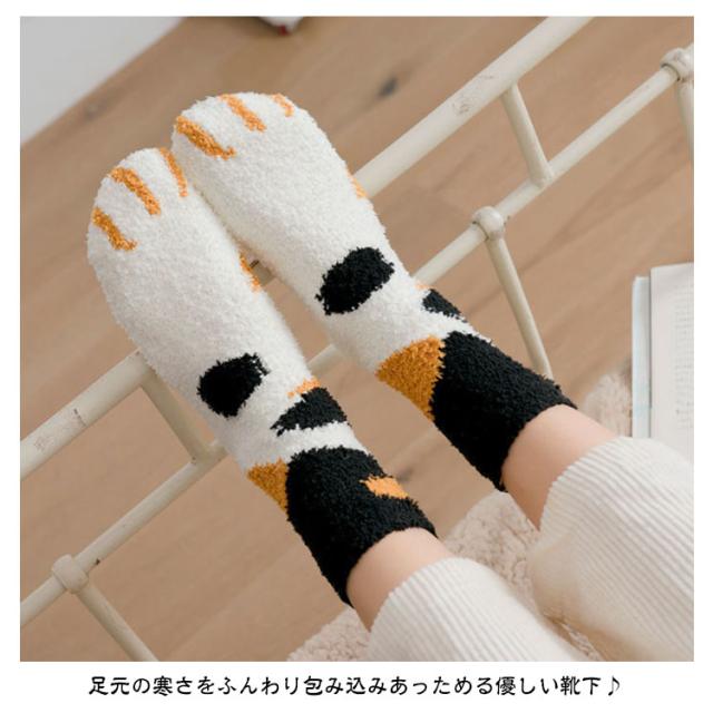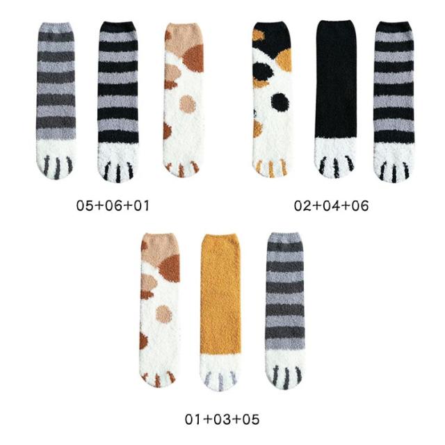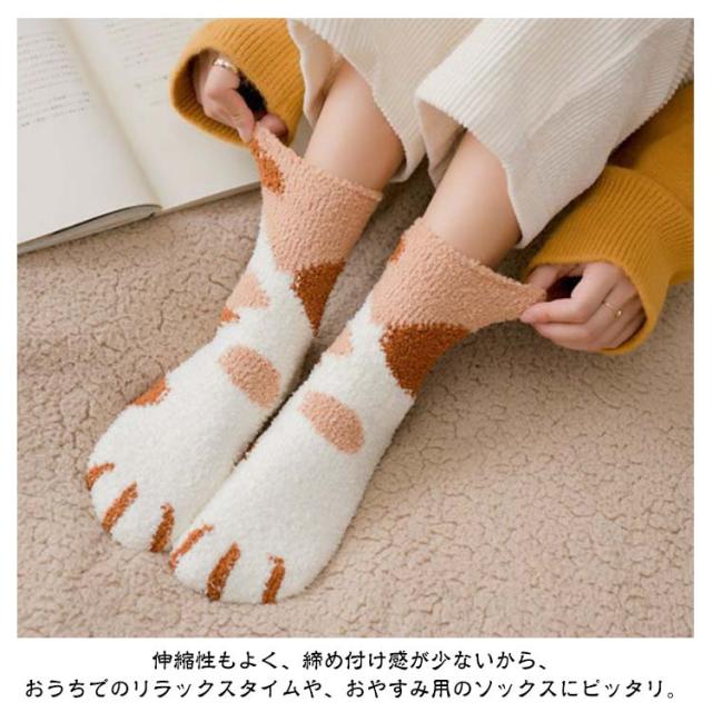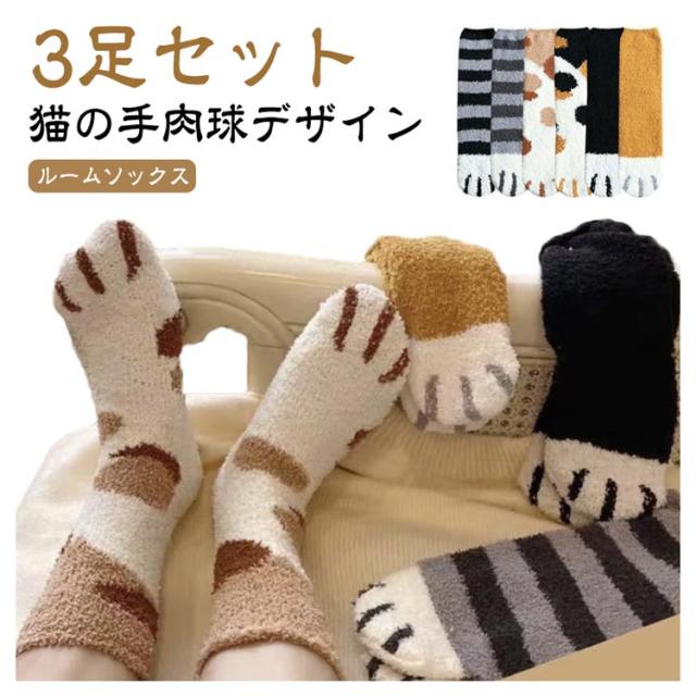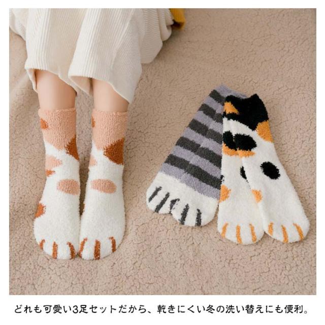3足セット 猫の手肉球デザイン フリースボア靴下 あったか 秋 ふわふわ レディース もこもこ おしゃれ 冬 春 冷え対策 防寒 暖かい 厚手 防寒 男女兼用 中学生 マシュマロ靴下 3足セット クルー丈ルームソックス