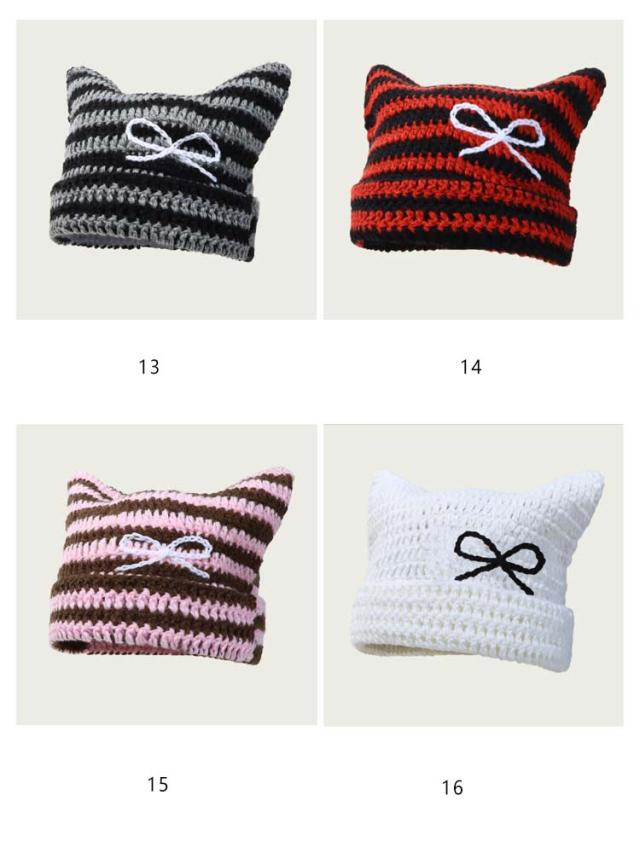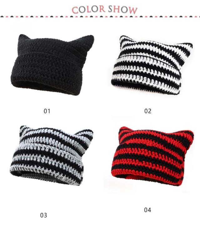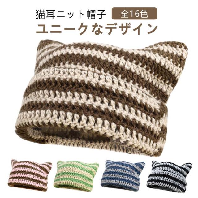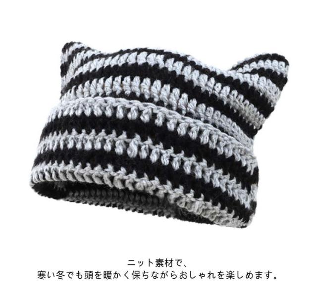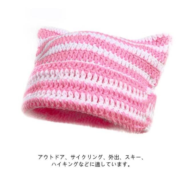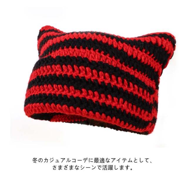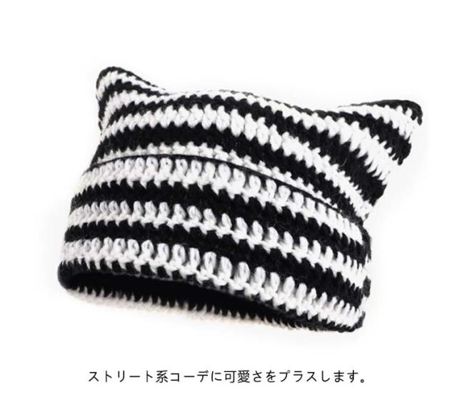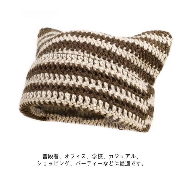 キャップ ソフト 秋冬春 ボーダー 暖かい レディース 帽子 サブカル系 地雷系 猫耳ニット帽 かわいい帽子 ビーニーハット 編み目 小顔効果 伸縮性 ニットキャップ 韓国ファッション 猫耳ニット帽 カジュアル 誕生日 プレゼント ネコミミ ネコ耳