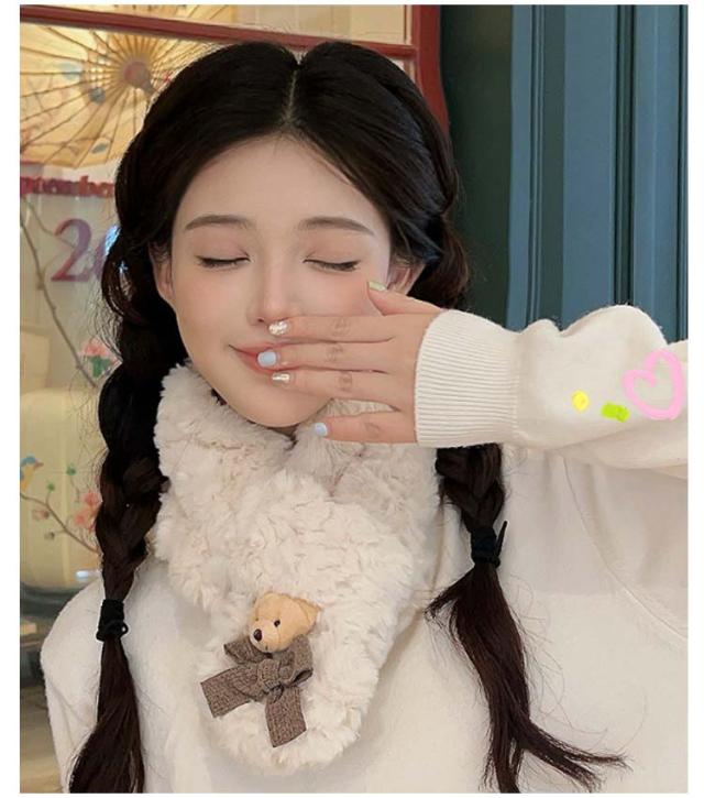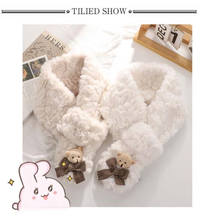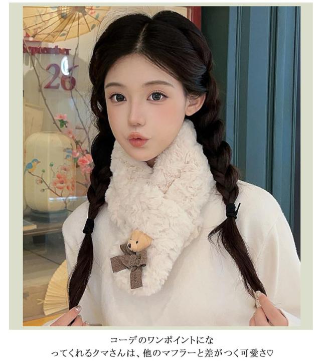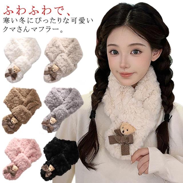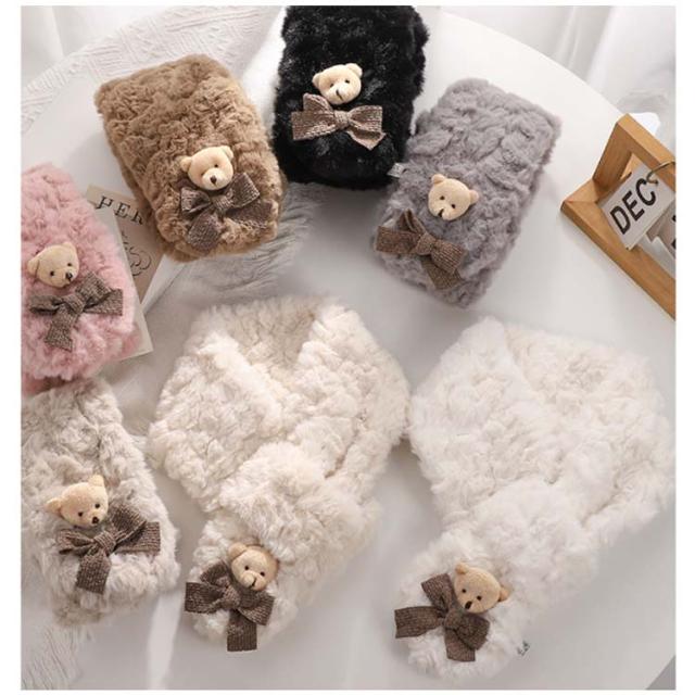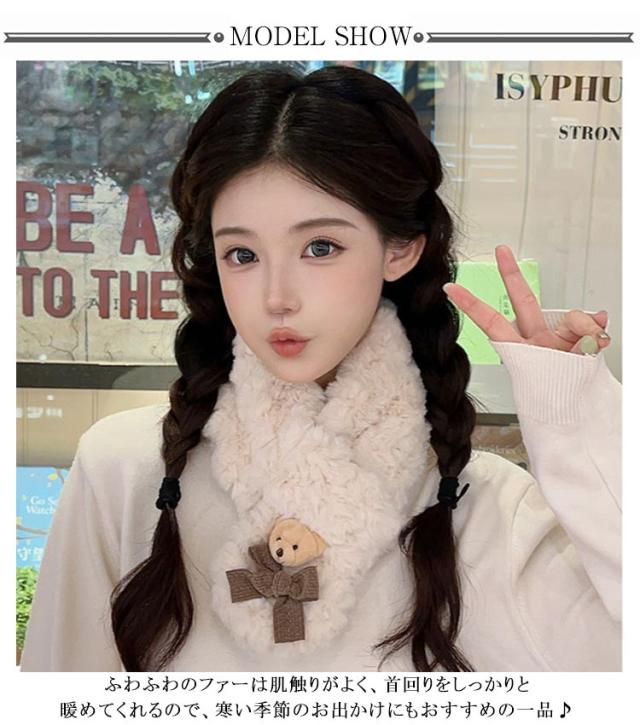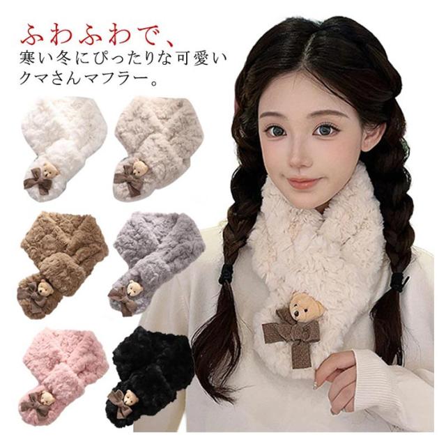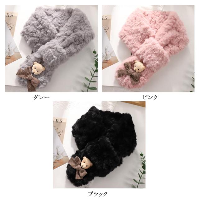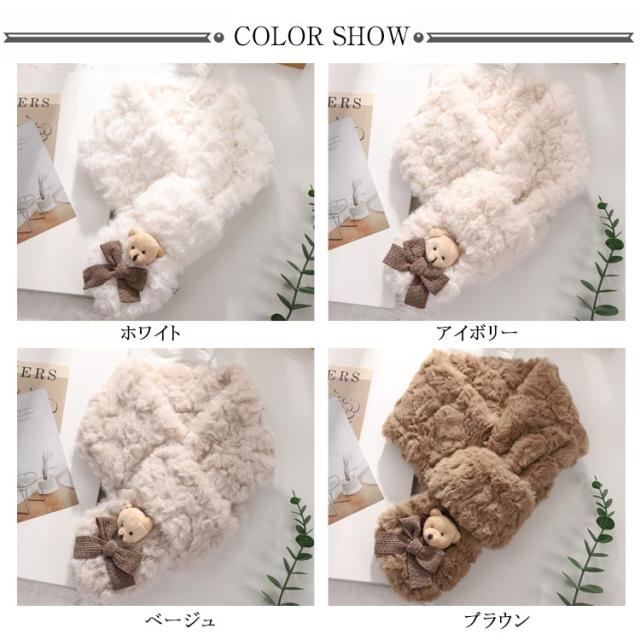 フェイクファー クマ ティペット マフラー ネックウォーマー マフラー ジュニア レディース もこもこ マフラー おしゃれ あったか 防寒 保温 スカーフ 防寒対策 かわいい ふわふわ 通学 通勤 クリスマス プレゼント