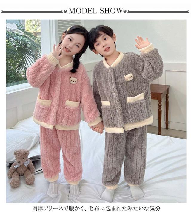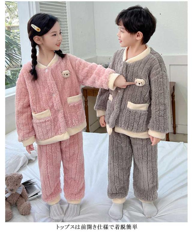ルームウェア 長袖 キッズ 女の子 おしゃれ ふわふわ もこもこ ジュニア パジャマ 防寒 男の子 フリースパジャマ 部屋着 寝巻き 上下セット 寝間着 子供服 こども服 ナイトウェア 春 秋 冬 かわいい パジャマ 無地