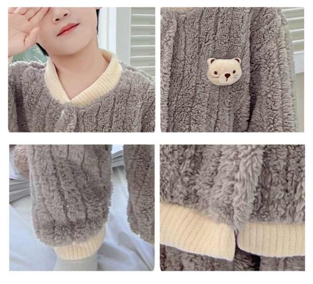 | ふわふわで暖かいキッズパジャマ 肉厚フリースで暖かく、毛布に包まれたみたいな気分 トップスは前開き仕様で着脱簡単 パンツのウエストゴムでストレスフリーな穿き心地。 | |