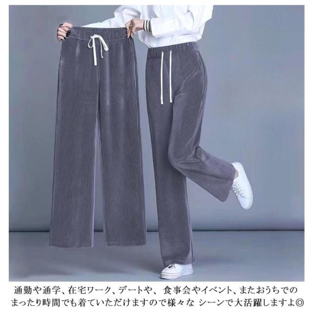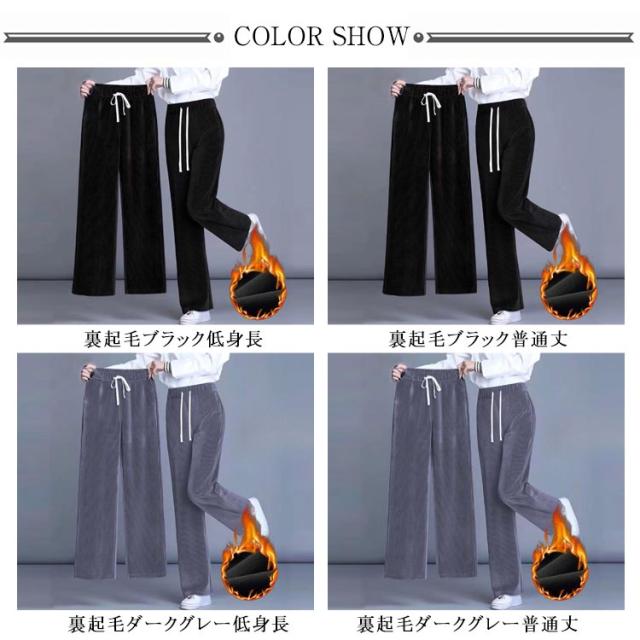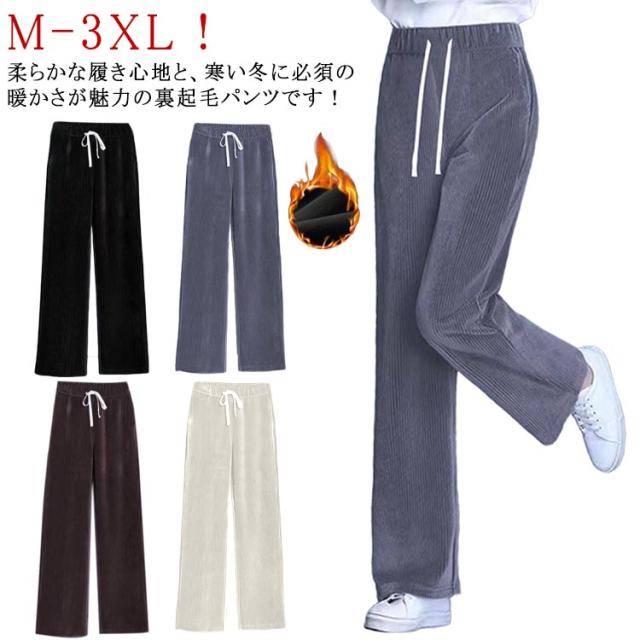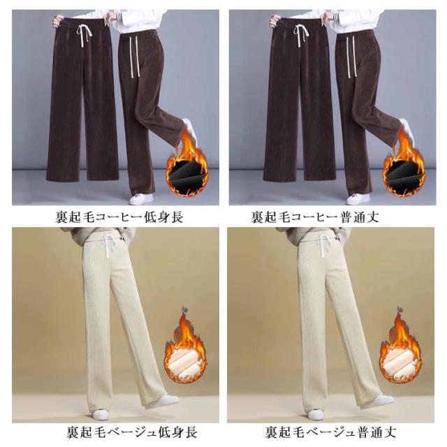 レディース 美脚 50代 裏起毛 コーデュロイ 秋 脚長 ワイドパンツ パンツ リブパンツ ハイウエスト パンツ 20代 極暖 裏ボア パンツ 春 裏起毛 冬 あったかい ストレートパンツ 長ズボン カジュアル 低身長 冬 30代 40代 秋 ルームウェア 無地
