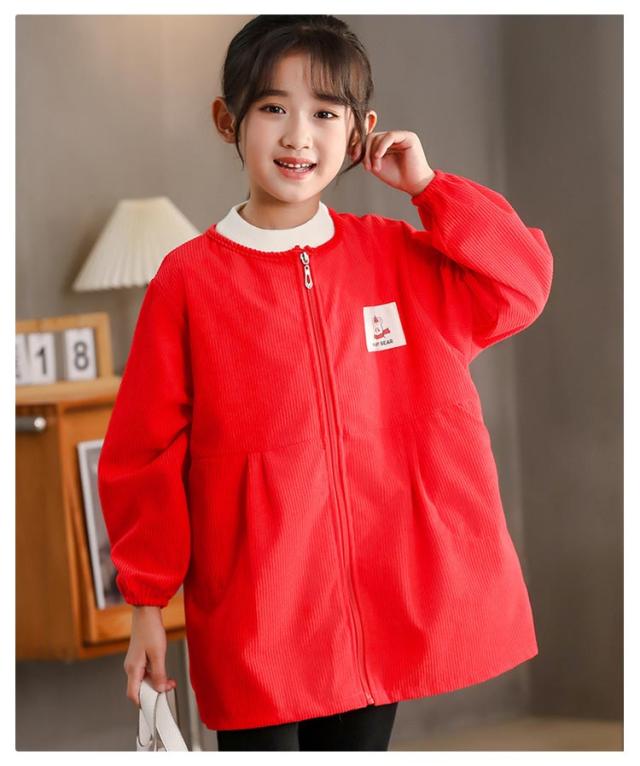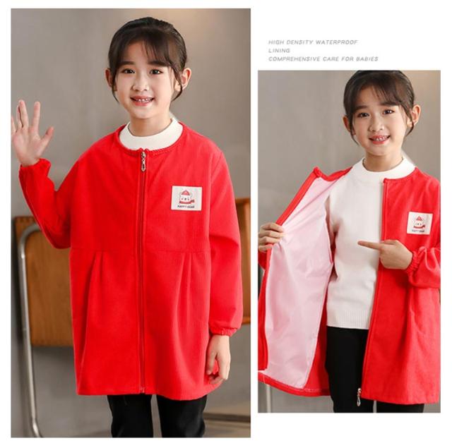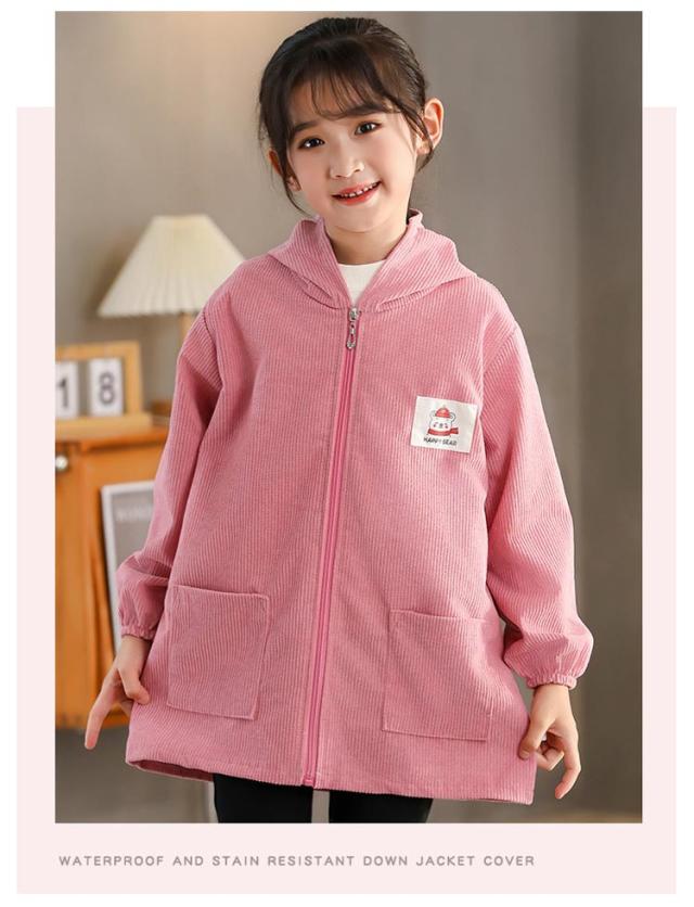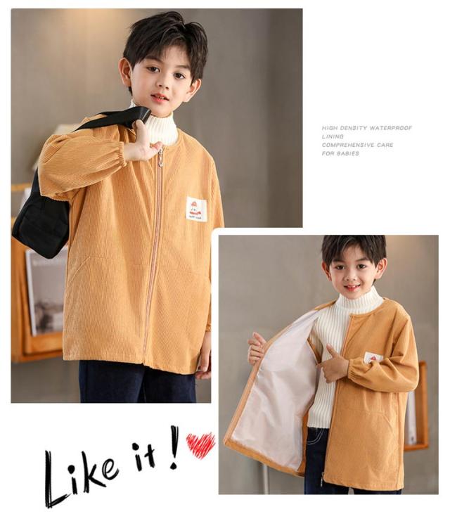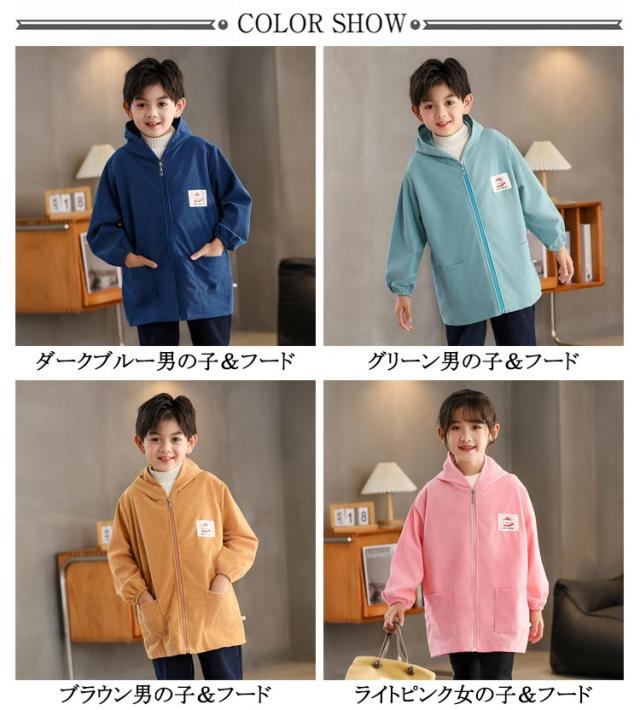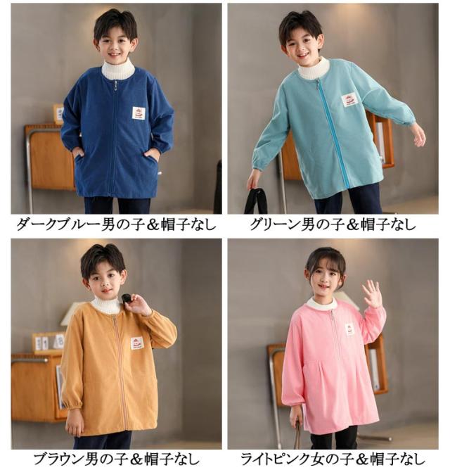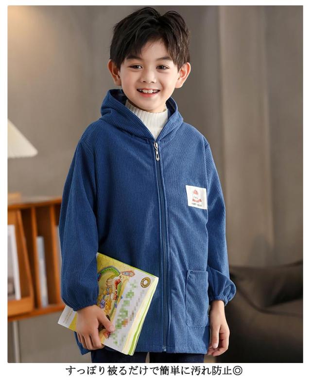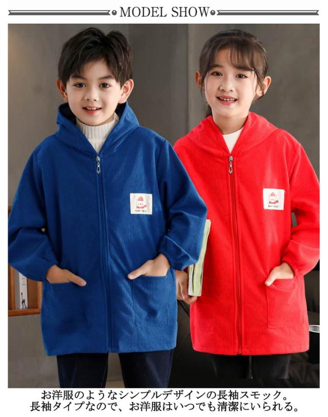 長袖スモック スモック 子供用 前開き プレイウェア はっ水 幼稚園 無地 撥水加工 長袖 ジップアップ 砂遊び コーデユロイ スモック お砂場着 お食事 フード付き 可愛い 小学生 エプロン エプロン 汚れ防止 絵画 外遊び キッズ ベビー 男の子