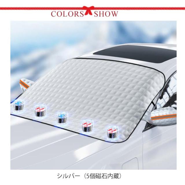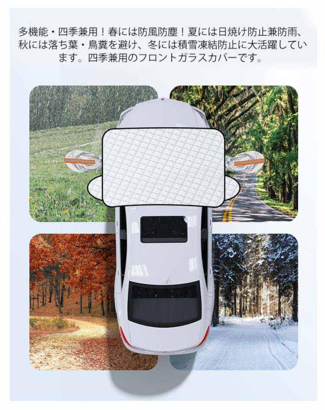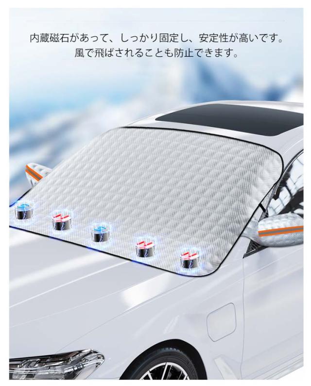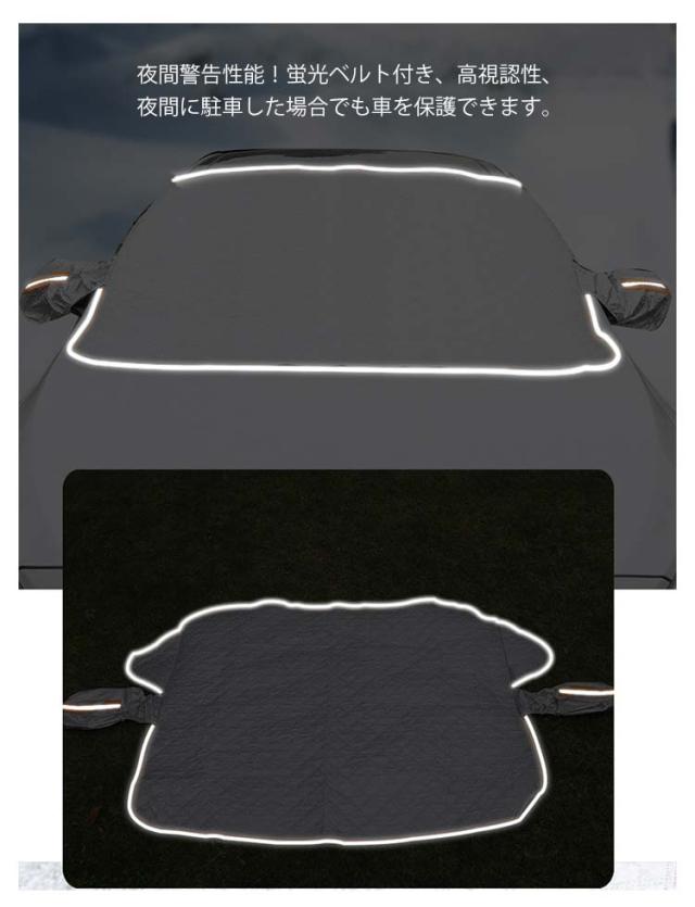 | 雨・雪・埃をシャットアウトできる車用フロントガラスカバーです。 凍結防止カバーには、寒い冬の時にフロントガラスの霜/雪/氷の積みを防ぐ、車をしっかり保護できます。 内蔵があって、しっかり固定し、安定性が高いです。風で飛ばされることも防止できます。 多機能・四季兼用!春には防風防塵!夏には日焼け防止兼防雨、秋には落ち葉・鳥糞を避け、冬には積雪凍結防止に大活躍しています。四季兼用のフロントガラスカバーです。 夜間警告性能!蛍光ベルト付き、高視認性、夜間に駐車した場合でも車を保護できます。 | |
