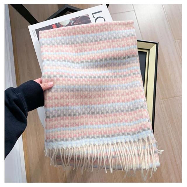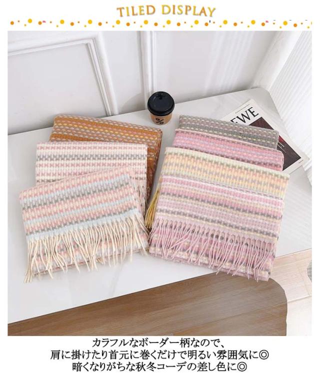 ストール 大判 ボーダー柄 レディース マルチカラー きれいめ マフラー タッチ 薄手 フリンジ 女性 カシミヤ タッチ カラフル おしゃれ なめらか 高見え 暖かい 羽織 冬 春 秋 大判 大人可愛い あたっか マフラー クリスマス バレンタイン プレゼント 【送料無料】