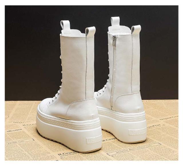 厚底 レディース 8cm身長アップ 厚底ブーツ 冬 レースアップ 編み上げ スニーカーブーツ ブーツ ショートブーツ 美脚 裏ボア 暖かい 春 秋 8cm身長アップ ホワイト ブラック