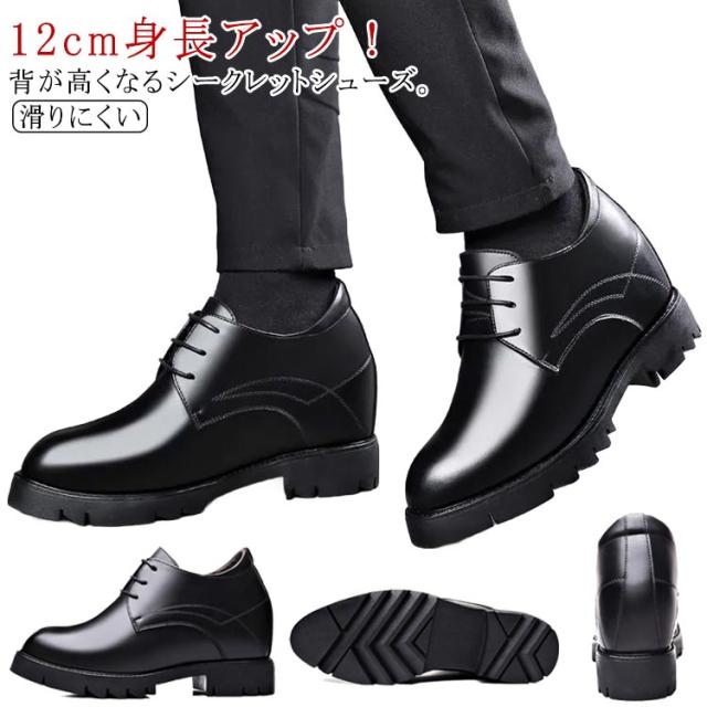 カジュアルシューズ 厚底 革靴 12cm シークレットシューズ 身長アップ レースアップ 紳士靴 12cm身長アップ ビジネスシューズ 紐靴 超軽量 靴 シューズ 12cm身長アップ 結婚式 ドレスシューズ レザーシューズ 歩きやすい 防滑 滑りにくい 黒