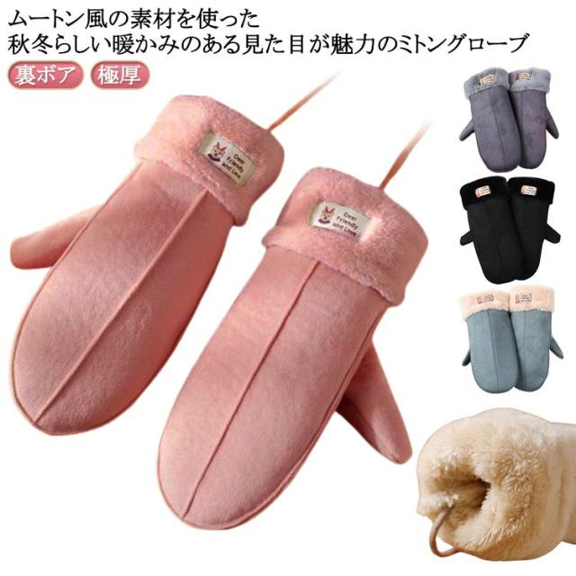 ミトン 防寒 厚手 レディース 裏ボア ミトン手袋 二重 グローブ シンプル 無地 裏起毛 ファー付き かわいい 冬 あったか ハンドウォーマー 手袋 手袋 もこもこ ボア ムートン風 手袋 防風 保温 暖か 暖かい スエード風 おしゃれ 柔らかい アウトドア