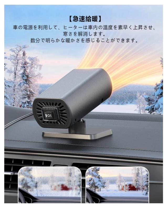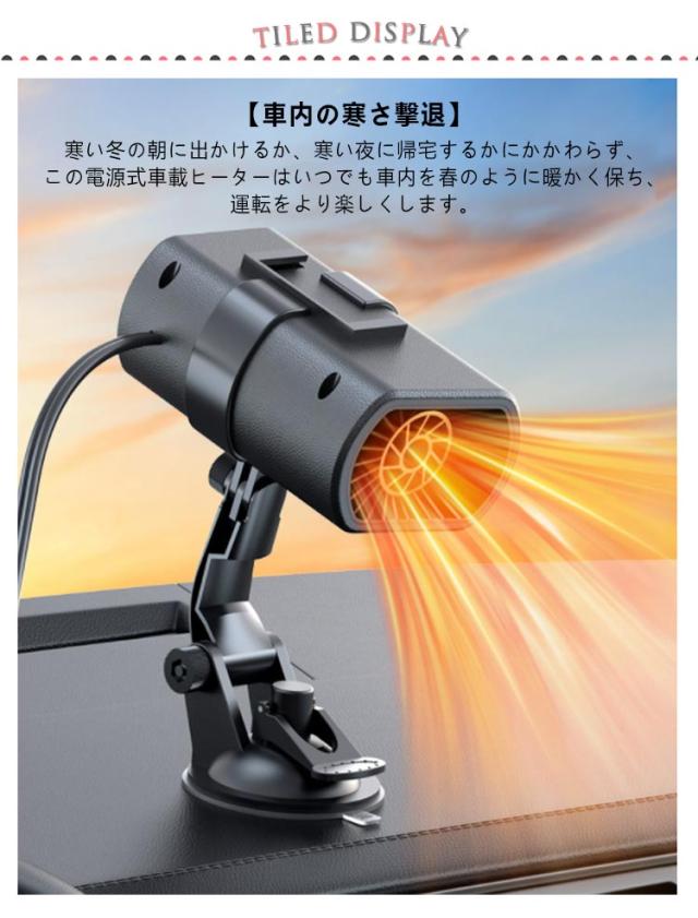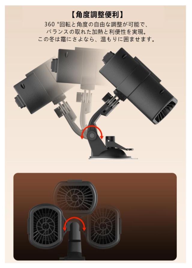 ガラス凍結防止 ヒーター 車載ヒーター 温風 暖房 除霜 ポータブル 車載 シガーソケット 急速加熱 車載用ポータブルファンヒーター 自動車用粘着式ベース付き 車載ヒーター 除霧 車内ヒーター 360度回転 2段階調節 角度調節可能 曇り防止 融雪