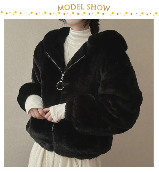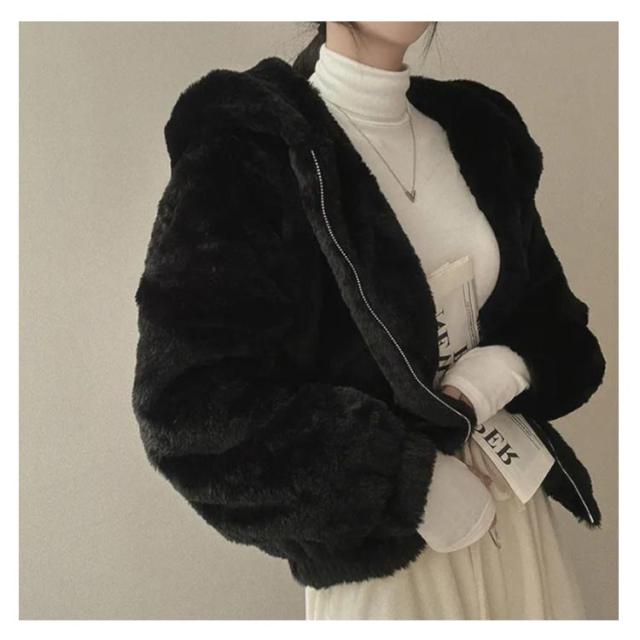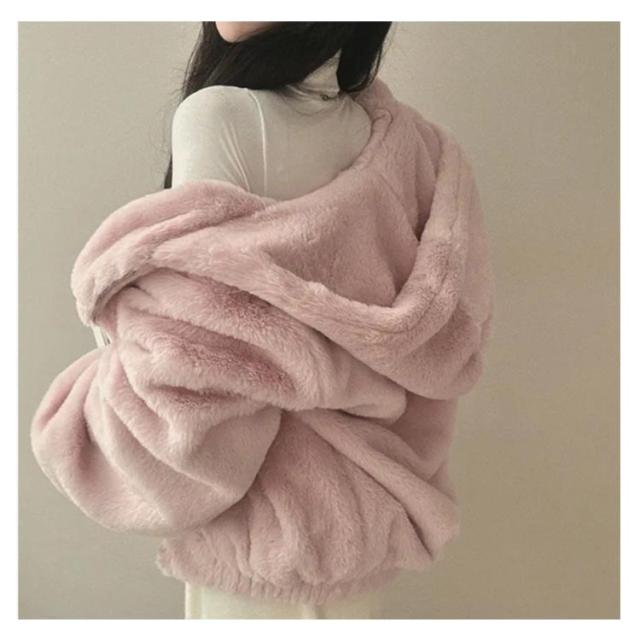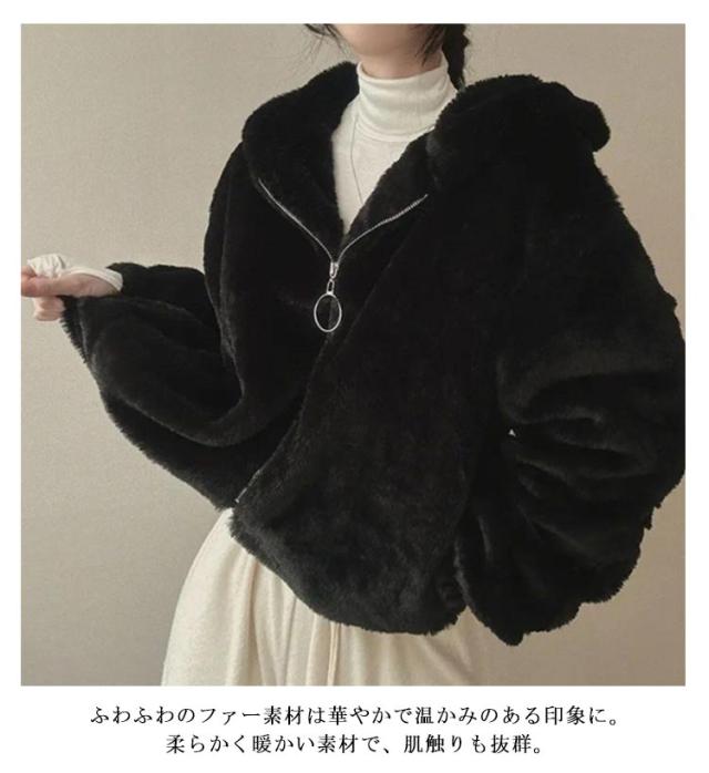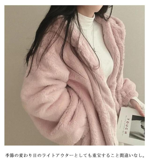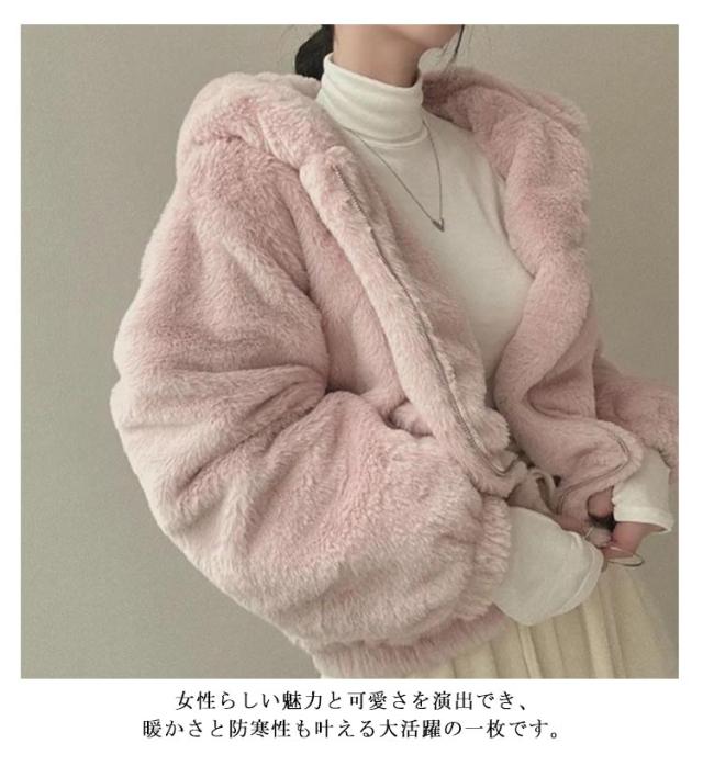 フェイクファー レディース エコファー フード付き ふわふわ ジャケット ファーブルゾンファーコート アウター ジャケット アウター エコファー ふわふわ もこもこ エコファー ブルゾン 防寒 暖かい 韓国風 ブラック ピンク