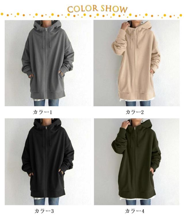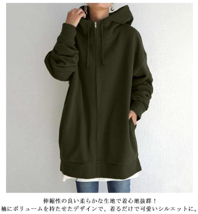 ブルゾン パーカー 薄地 ボリュームネック ブルゾン カジュアル レディース ジップパーカー ハイネック フード付き ジップアップパーカー ロングパーカー オーバーサイズ 前開き アウター 大きいサイズ おしゃれ ジップアップ