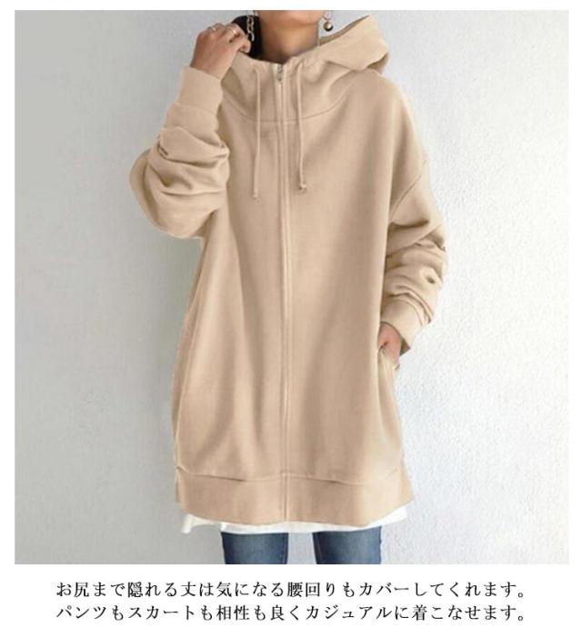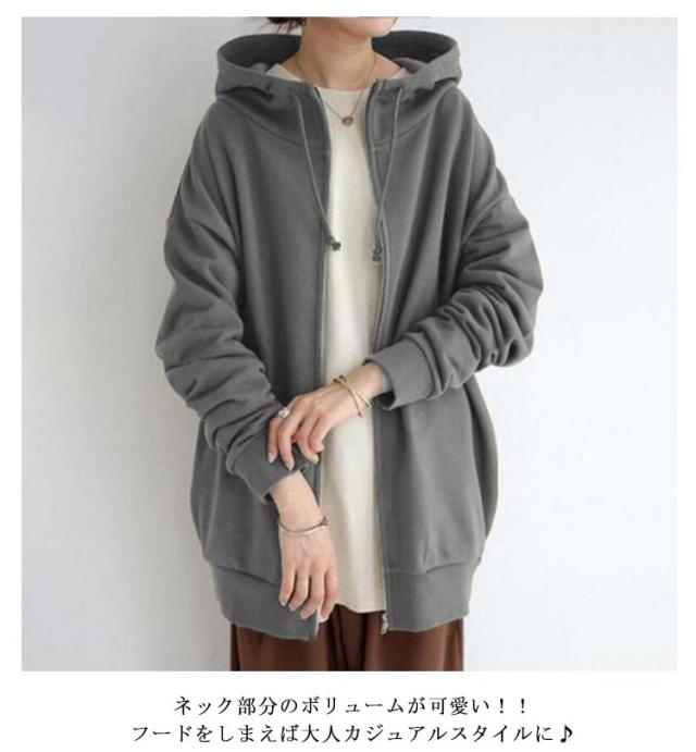 | 流行にとらわれないロング丈のジップアップパーカー。 ネック部分のボリュームが可愛い!!フードをしまえば大人カジュアルスタイルに♪ お尻まで隠れる丈は気になる腰回りもカバーしてくれます。パンツもスカートも相性も良くカジュアルに着こなせます。 伸縮性の良い柔らかな生地で着心地抜群!袖にボリュームを持たせたデザインで、着るだけで可愛いシルエットに。 ルームウェアにちょっとしたお出かけにぴったりのアイテムです。 | |
