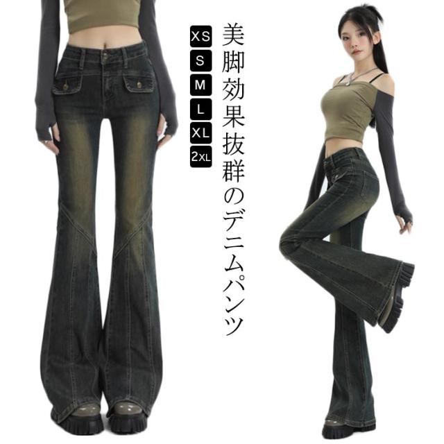 大きいサイズ ベルボトム デニム レディース デニムパンツ ロングパンツ 美脚 レディースパンツ フレアパンツ フレア ボトムス フレア 脚長パンツ おしゃれ カジュアル 春秋 ジーンズ 着?せ ロング丈 大人 女性