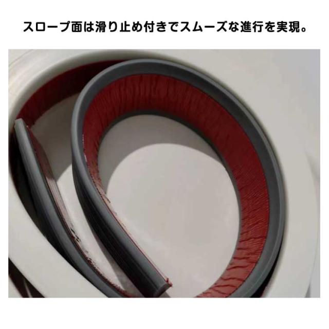 | テープ式段差解消スロープは貼るだけで簡単設置可能 スロープ面は滑り止め付きでスムーズな進行を実現。 シリコン製スロープはクッション性があり、車イスの走行時には車輪の振動を吸収し、体にショックを与えません。 室内の敷居、屋外の玄関の段差や車庫の段差など、ご使用場所に合わせて長さをカットしてお使いいただけます。 あらゆる種類の掃除ロボットに適しています。 目立つ色を置けば高齢者への注意喚起になり転倒防止につながります! | |