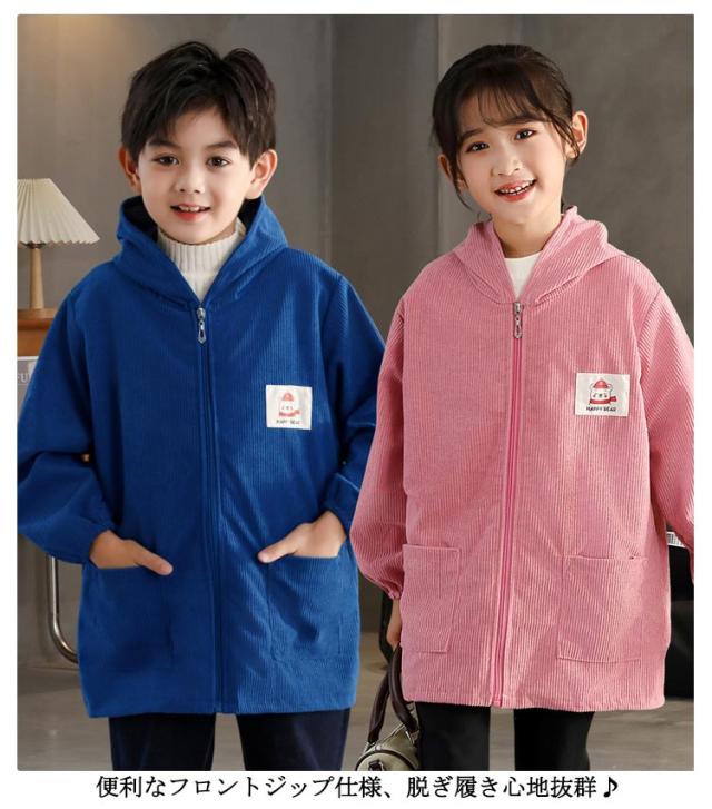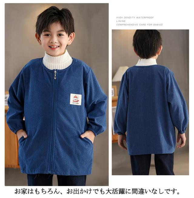 スモック スモック 無地 フード付き 子供用 はっ水 幼稚園 前開き 小学生 長袖 長袖スモック 砂遊び エプロン コーデユロイ お砂場着 撥水加工 ジップアップ 可愛い 無地 お食事 プレイウェア 汚れ防止 絵画 外遊び キッズ ベビー 男の子