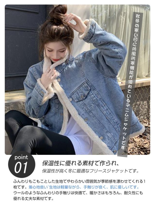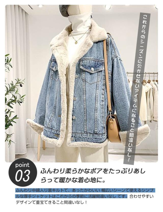 デニムジャケット レディース ボアジャケット 両面着 デニムコート 裏起毛 ボアコート 春 アウター あったか リバーシブル アウター カジュアル ブルゾン 長袖 ゆったり おしゃれ 秋冬 防寒 厚手 暖かい 冬