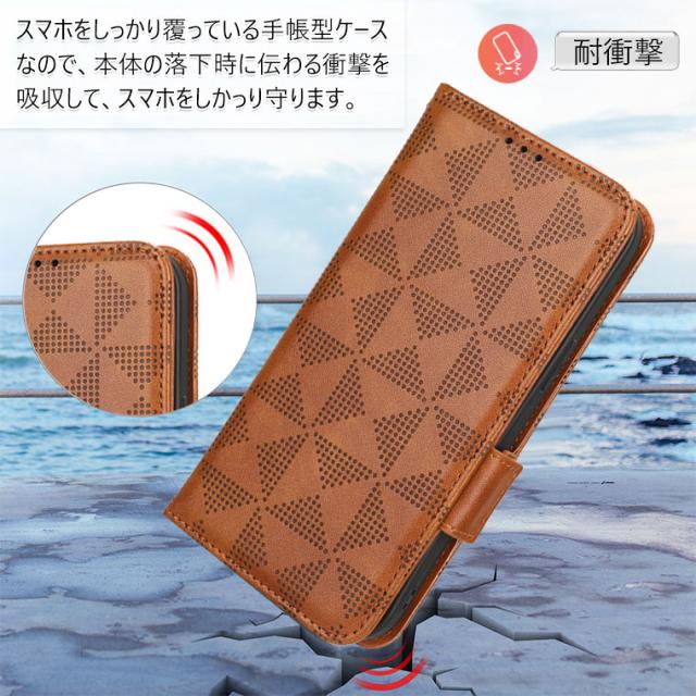 スマホをしっかり覆っている手帳型ケースなので、本体の落下時に伝わる衝撃を吸収して、スマホをしかっり守ります。