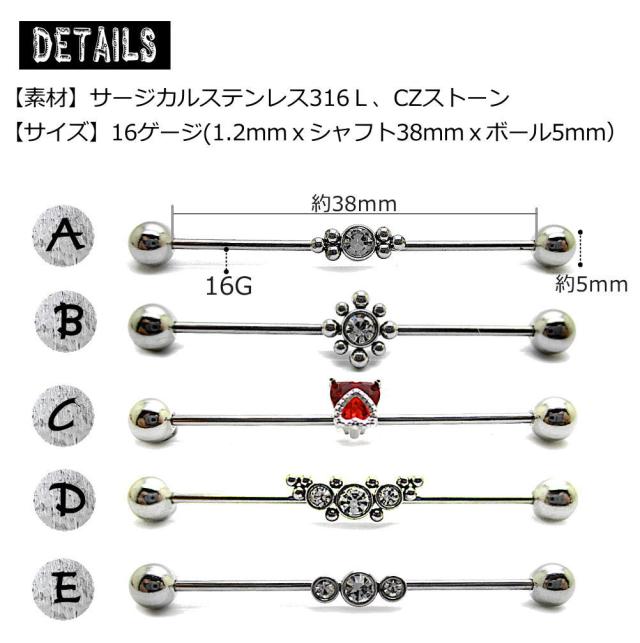 16G インダストリアル 繋ぐ つなぐ ロングバーベル インダスピアス キラキラ CZ 軟骨ピアス ボディピアス ヘリックス ロング ピアス 16ゲージ bp938