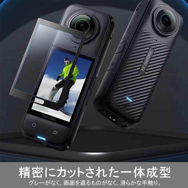 Insta360 X4 アクションカメラ強化ガラスフィルム 耐衝撃 3D全面保護強化ガラスフィルム ラウンドエッジ加工 98%透過率 3D 高透明度 インスタ360 X4