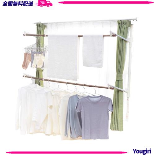 アイリスオーヤマ 窓を開けるだけで外に干さずに乾かせる窓枠洗濯物干し 約3人分 簡単設置 幅約110~190cm 高さ約110~190cm 木目調 ホワイ