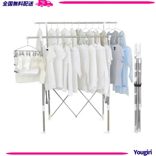 干す量やスペースに合わせて伸縮できる組み立て不要の物干しです。 ワンピースやズボンなどの長物も干すことができます。 使用しない時は、スリムに収納できる収束タイプ。 スリムにまとまるので、1階から2階への移動や、ベランダから室内への移動などが楽におこなえます。 丈夫でサビに強い、ステンレス巻きスチールパイプを採用しています。 収納や持ち運びに便利なゴムバンド付きです。