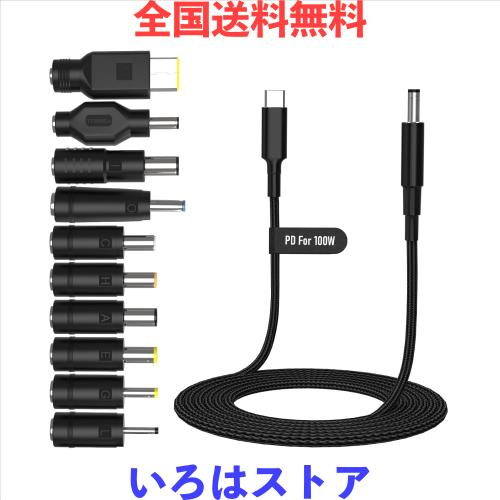【ノートパソコン 充電ケーブル セット品】ノートパソコンに付属するACアダプターの代わりに、USB Type-C(USB-C)ポート搭載のAC充電器からパソコン本体の充電ポートへ充電できるの変換ケーブルです。USB CオスからDC端子(外径5.5mm/内径2.1mm)仕様で、Type-C ポートを備えたPD対応充電器からラップトップの DC ジャックまでに接続してから充電できます。 また、丸端子対応の10個パソコン用変換プラグが付属しており、様々様々なノートパソコンに対応可能です。複数PCデバイスがあるとプラグ変換だけで充電可能です!!【ご注意】Type C to DCケーブルは最大20V/5Aの負荷電流に対応しています。