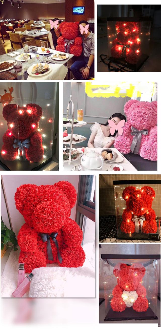 フェイクフラワー テディベア形の花 ローズベア ぬいぐるみブーケ ローズ熊 ロリポップ花輪 ローズ バラ ギフトボックス 贈り物 記念日 母の日 サイズ:40cm