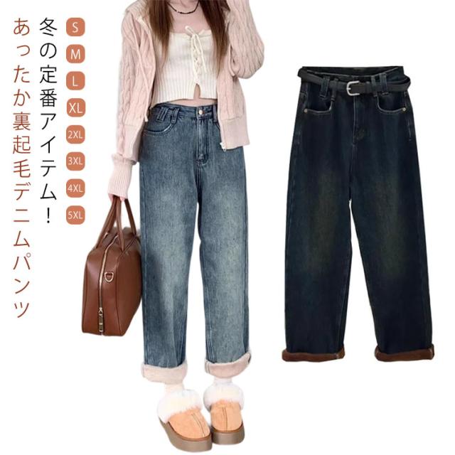 防寒 あったか デニムパンツ デニム ゆったり 裏ボア 裏起毛 ワイドパンツ 防風 ジーンズ ワイド パンツ 裏ファー ストレート ハイウエスト パンツ レディース フリース 起毛 韓国 温かい 大きいサイズ カジュアル ゆったり ズボン ボトムス ジーパン 極暖 秋冬