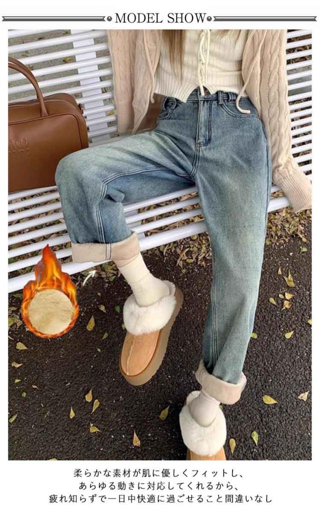 | 冬の定番アイテム!あったか裏起毛デニムパンツ 柔らかな素材が肌に優しくフィットし、あらゆる動きに対応してくれるから、疲れ知らずで一日中快適に過ごせること間違いなし 保湿性に優れたきめ細かな裏起毛が、冷えがちな女性の身体を優しく包み込んでくれるからなのです エレガントな女性のための特別なデザインゆったりとしたシルエット、気になる体型をカバーできる。 ハイウエストデザインで脚長こうかばっちり!肌触りの優しい素材が気持よく着心地も抜群です | |