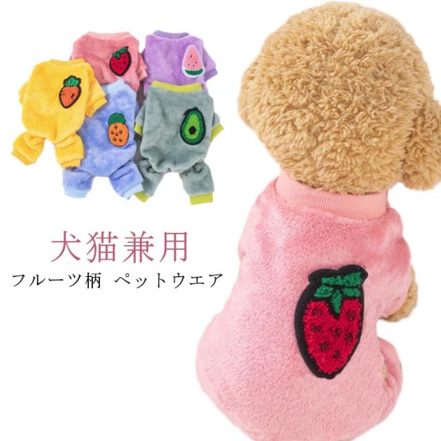 犬服 猫服 秋冬 防寒物 ペット用 フルーツ柄 ドッグウエア パーカー ペット服 かわいい 犬猫兼用 小型犬 中型犬 保温 暖かい 送料無料