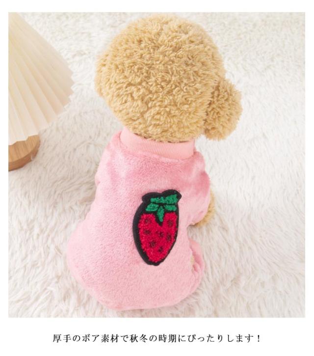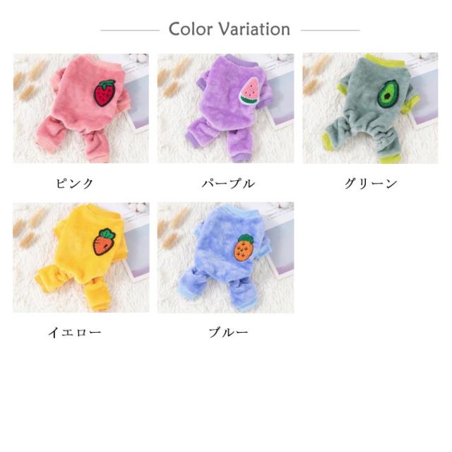 | 上品で可愛いフルーツデザインのペット服。犬猫兼用タイプ。 厚手のボア素材で秋冬の時期にぴったりします! とてもソフトで快適な生地で、空気が溜まりやすく、軽量で保温性に優れ、丁寧な縫製でしっかりとした生地感が持ち味です! クリスマス、ハロウィーン、ウェディング、休日、パーティー、散歩などにも適用します! | |