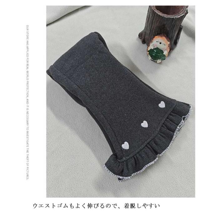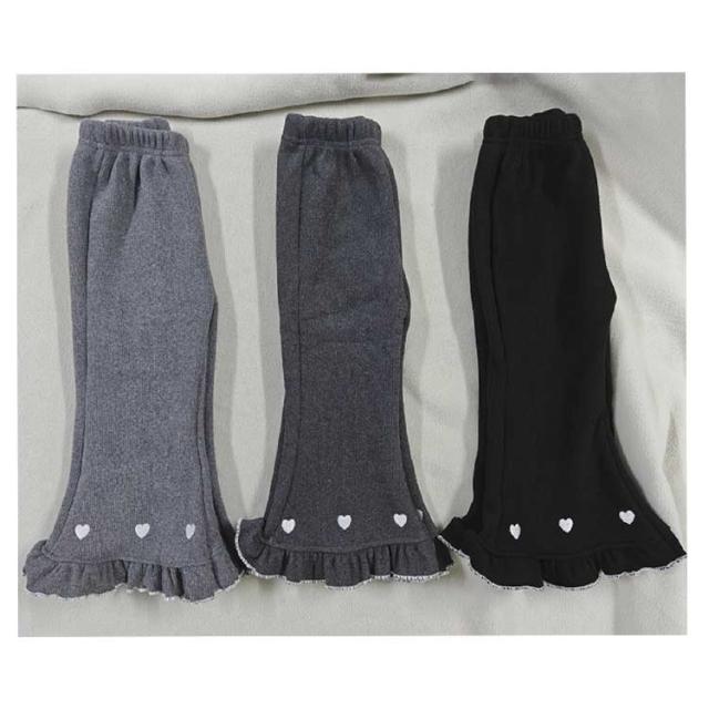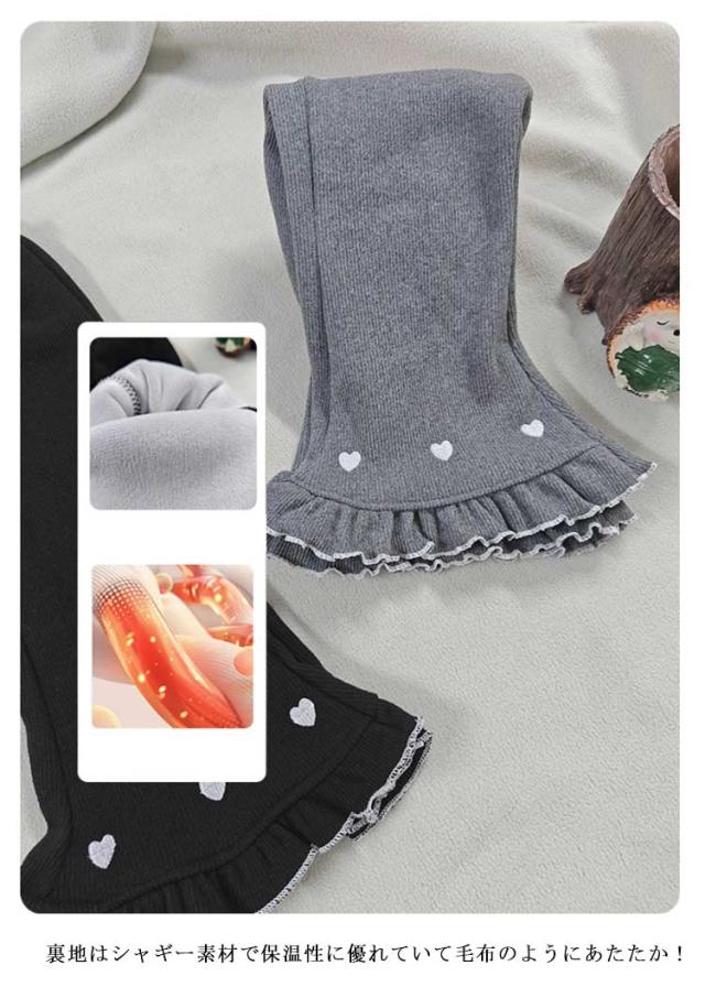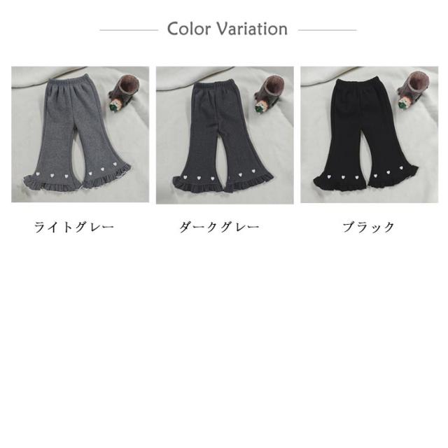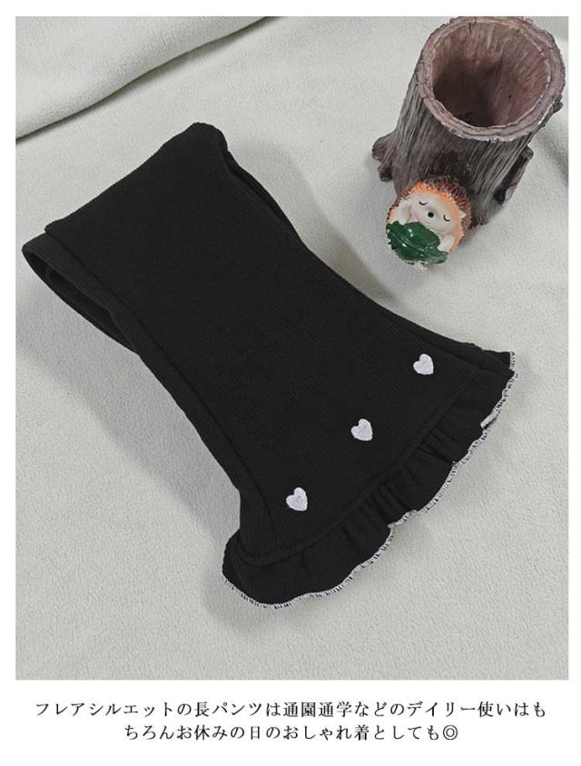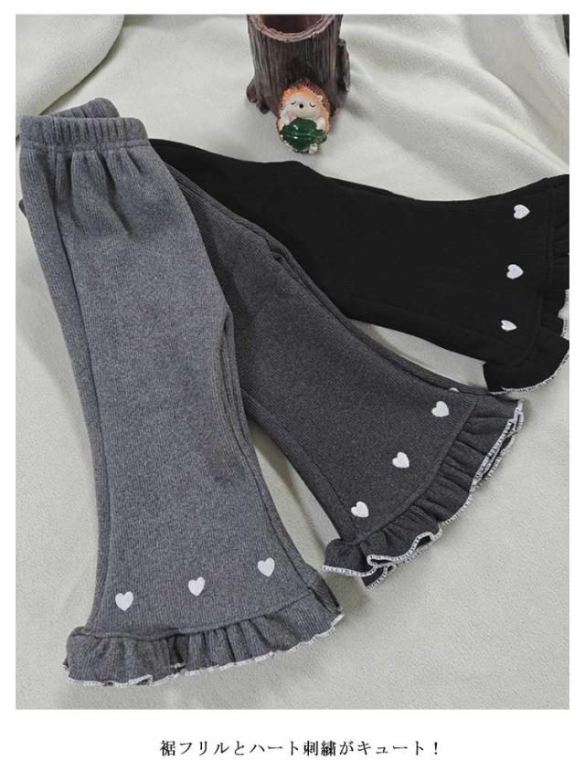 キッズ フレアパンツ 裏起毛 裏シャギー パンツ 子供服 キッズ服 ベビー 女の子 レギンス レギパン 長ズボン ロングパンツ ボトムス あったか 厚手 ふわふわ 暖かい 裾フリル ハート刺繍 かわいい 秋冬 子ども服 防寒 保温 冬服 80 90 100 110 120 130 140 150 送料無料