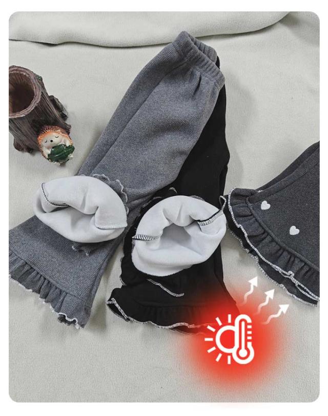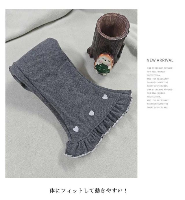| 80〜150cm!裏起毛フレアパンツ 裾フリルとハート刺繍がキュート! 裏地はシャギー素材で保温性に優れていて毛布のようにあたたか! 体にフィットして動きやすい! ウエストゴムもよく伸びるので、着脱しやすい フレアシルエットの長パンツは通園通学などのデイリー使いはもちろんお休みの日のおしゃれ着としても◎ | |
