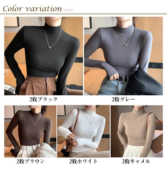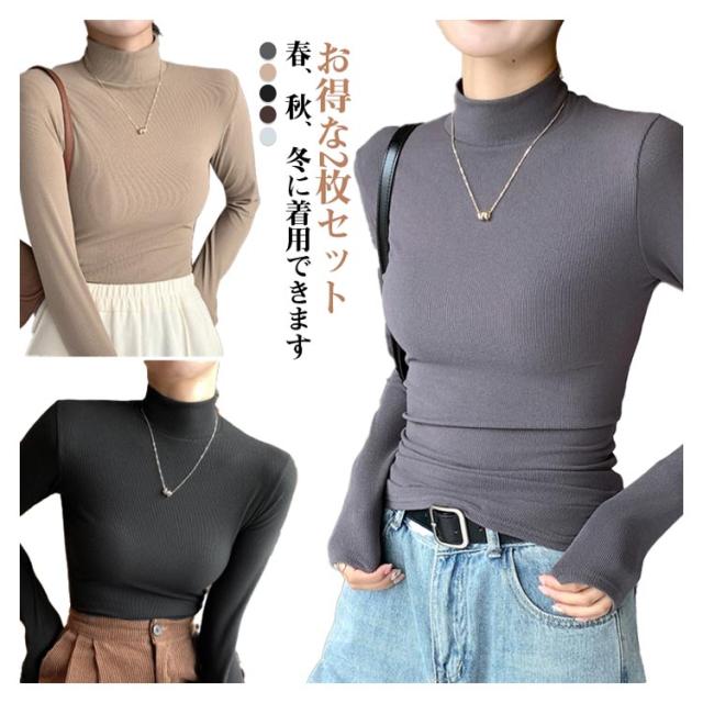 カットソーハイネック ニット レディース 春 【2枚セット】トップス 薄手 暖かい レディース 秋冬 レディースカットソー長袖 ハイネックカットソー 長袖 【2枚セット】トップス きれいめ ハイネック 肌着 インナー タートルネック フォーマル スーツインナー