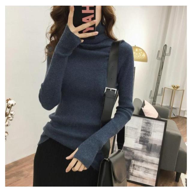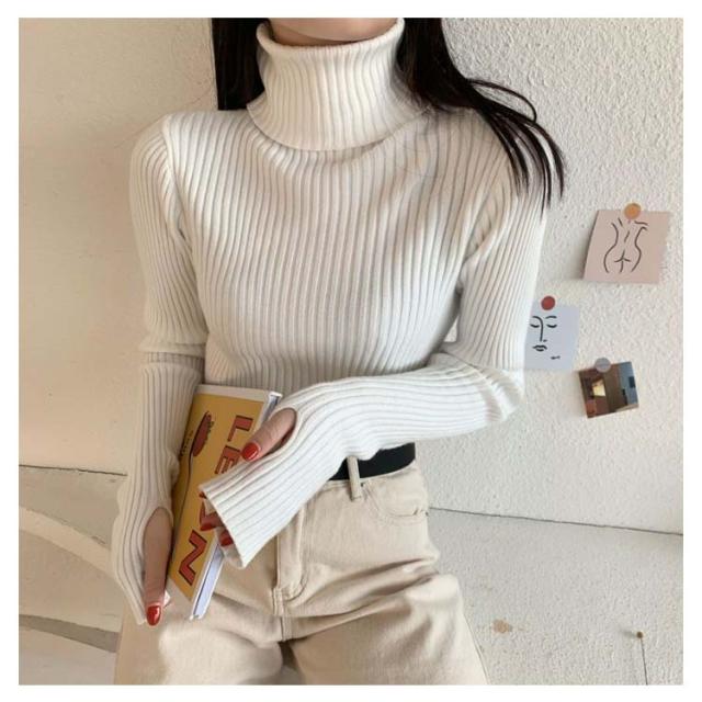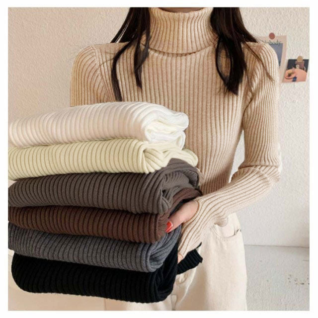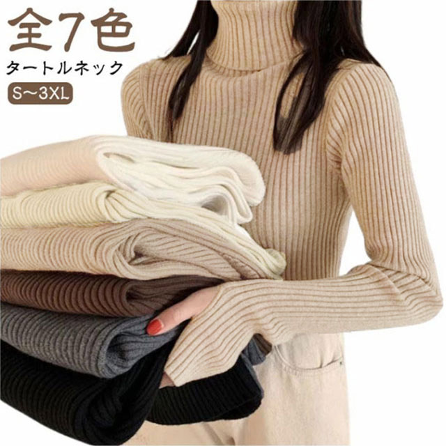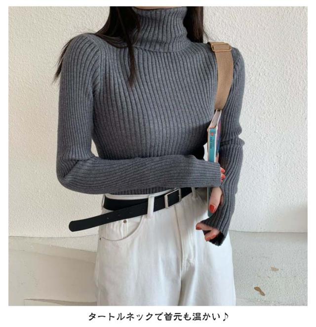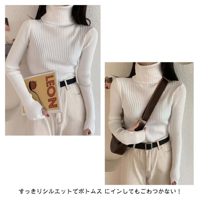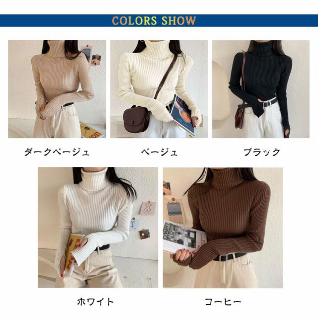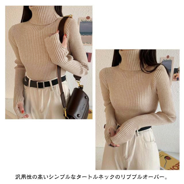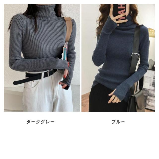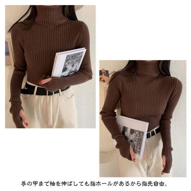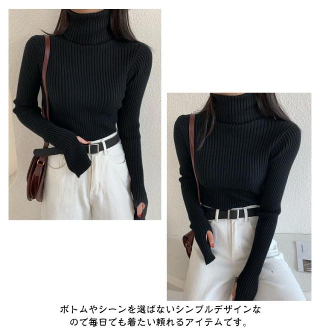 タートルネック 長袖 リブニット 無地 ハイネック ニットセーター 指穴付き もっちり ニット リブ タートルニット セーター インナー トップス 下着 重ね着 レイヤード プルオーバー もちもち 春 秋 冬 大人 高見え 送料無料