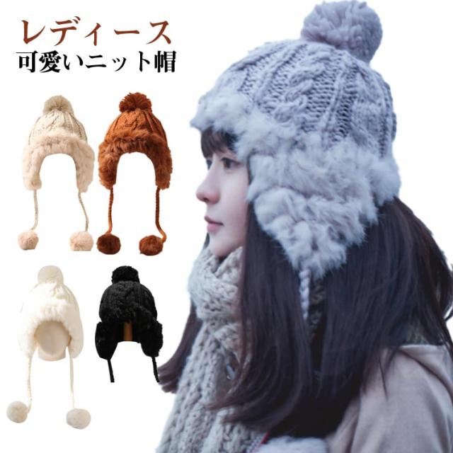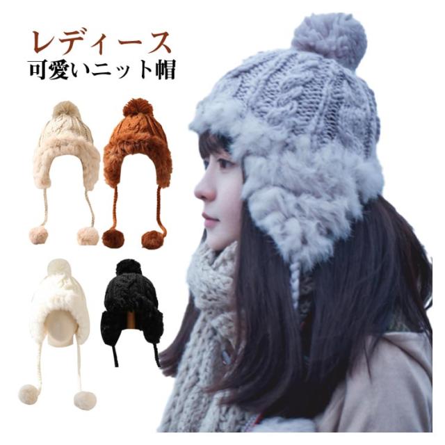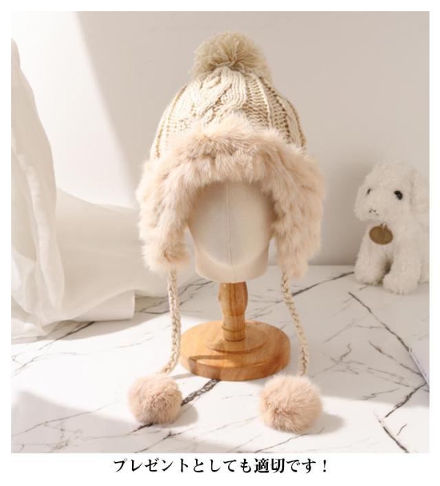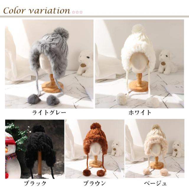 ファー ニット帽 防寒 ニットキャップ レディース キャップ 冬 ポンポン ファー付き 耳あて付きキャップ ファー帽子 ニット帽 シンプル 冬物 無地 可愛い 秋冬物 帽子 レディース 秋 ニット帽 防寒帽 ケーブル編み 帽子 秋