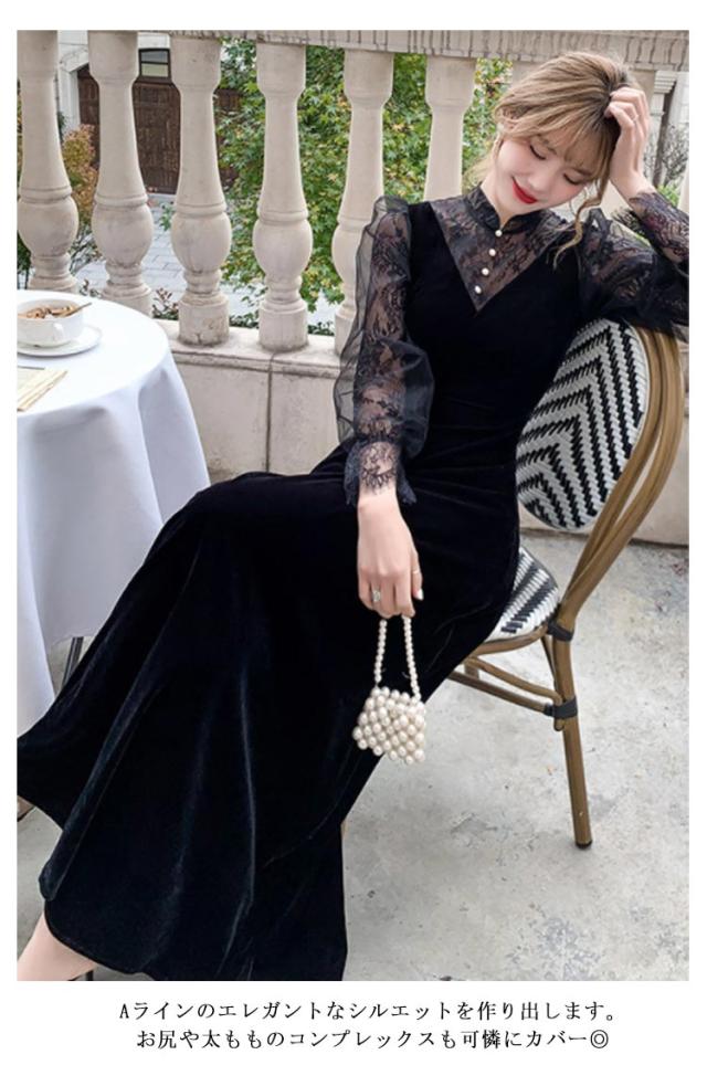 ドレス チュール お呼ばれ XS-3XL ワンピース レースワンピース 結婚式 XS-3XL パーティドレス 宴会ドレス 結婚式 イブニングドレス 韓国 長袖 パーティー 卒業式 成人式 同窓会 通勤 二次会 レディース 謝恩会 韓国 ベロア 春 秋