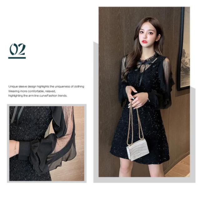 ワンピース ラメ ブラック パーティードレス 冬 韓国 ショート丈 キャバドレス ドレス ミニドレス 同窓会 成人式 ベルベット ラメ ベロアドレス キャバ嬢ドレス フレアワンピ ドレスワンピ ツイード 春 秋 長袖 ミニ丈 おしゃれ