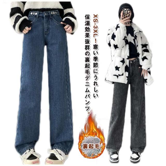 裏起毛 デニム ワイドパンツ あったかパンツ レディース デニムパンツ ボトムス ワイドデニム ジーンズ ジーパン ボトム 裏ボア あったか 暖かい 暖パン 保温 体型カバー ストレート ゆったり ハイウエスト 裏起毛なし 春服 可愛い 秋 冬 小さいサイズ 大きいサイズ 送料無料