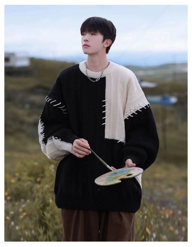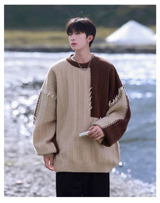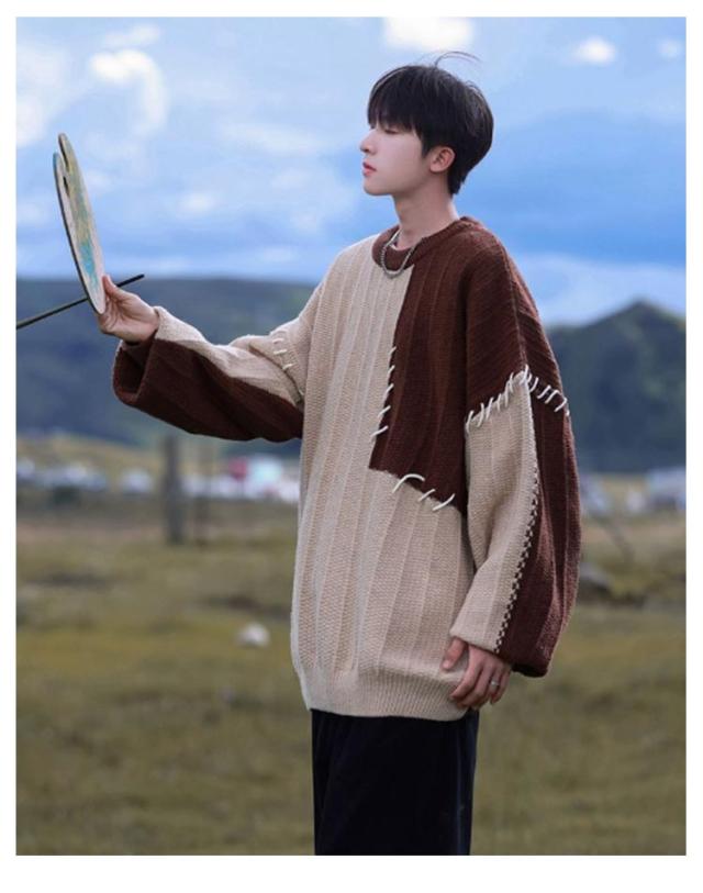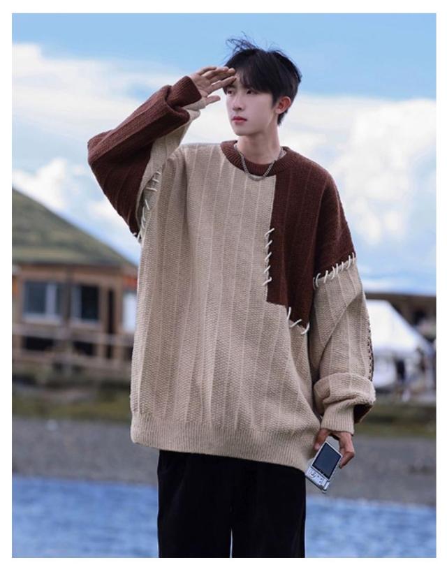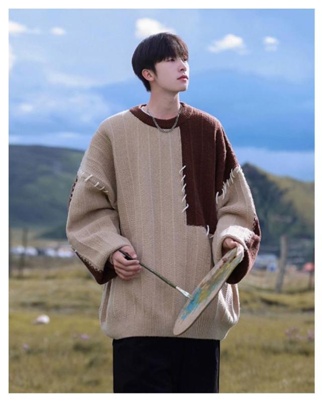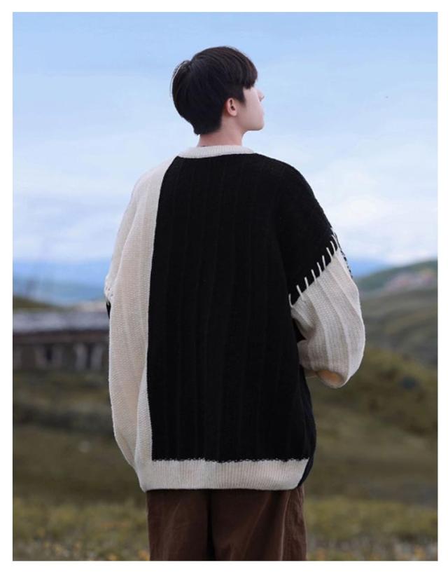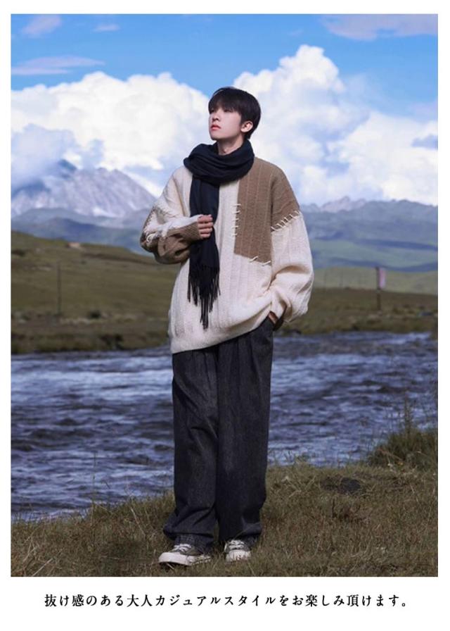 ビッグシルエット セーター メンズ 切り替え 配色 ニットセーター ニットトップス 長袖 ニットソー ゆったり おしゃれ 韓国ファッション M L XL 2XL 3XL