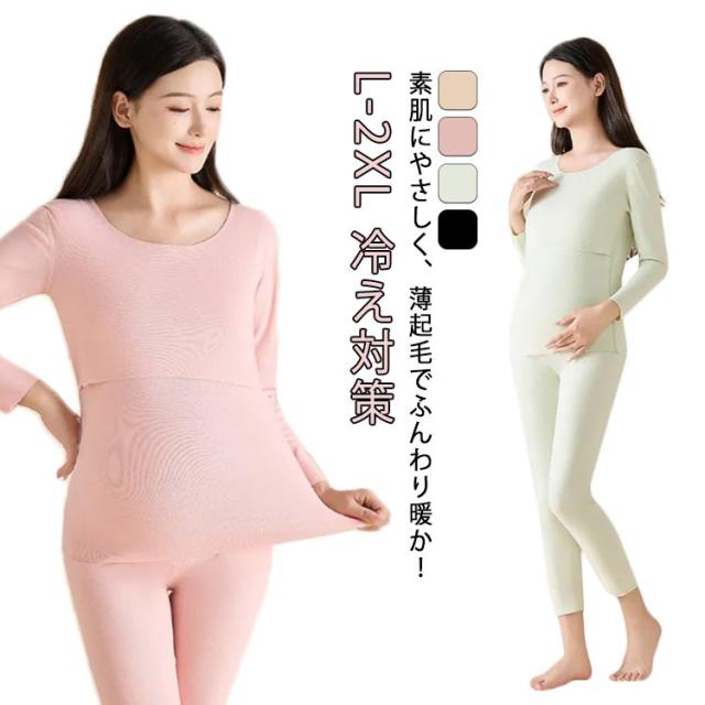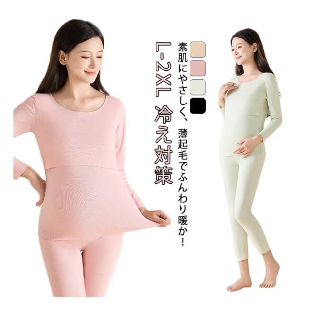 | 素肌にやさしく、薄起毛でふんわり暖か!真冬の寒さに負けない、可愛くておしゃれなマタニティインナーセットアップ。 ストレッチが効いていて穿き心地抜群! 表側も裏側も起毛加工をほどこした薄手のソフトタッチで肌当たりも抜群です。 トップスは授乳に便利なクロスオープンデザインで、寒い冬のインナーとして手放せなくなる高機能インナーです。 パンツウエストにはアジャスターがついているので、妊娠初期から臨月、産後まで長くお使いいただけます。 あったか起毛素材なのに薄手なので、インナーとしてはもちろんですが、部屋着やパジャマとしても大活躍。 | |