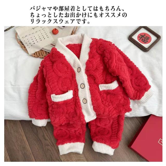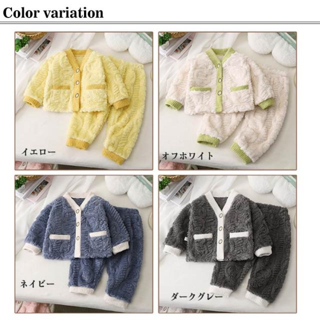 | 90〜160cm!ふわふわで柔らかい肌触りのボアパジャマ上下セット。 前開きタイプで着脱楽々。 ふんわり軽やかな両面ボア素材であたたかく、快適な着心地。 パジャマや部屋着としてはもちろん、ちょっとしたお出かけにもオススメのリラックスウェアです。 | |