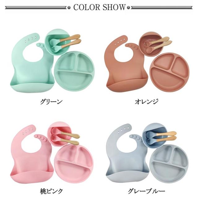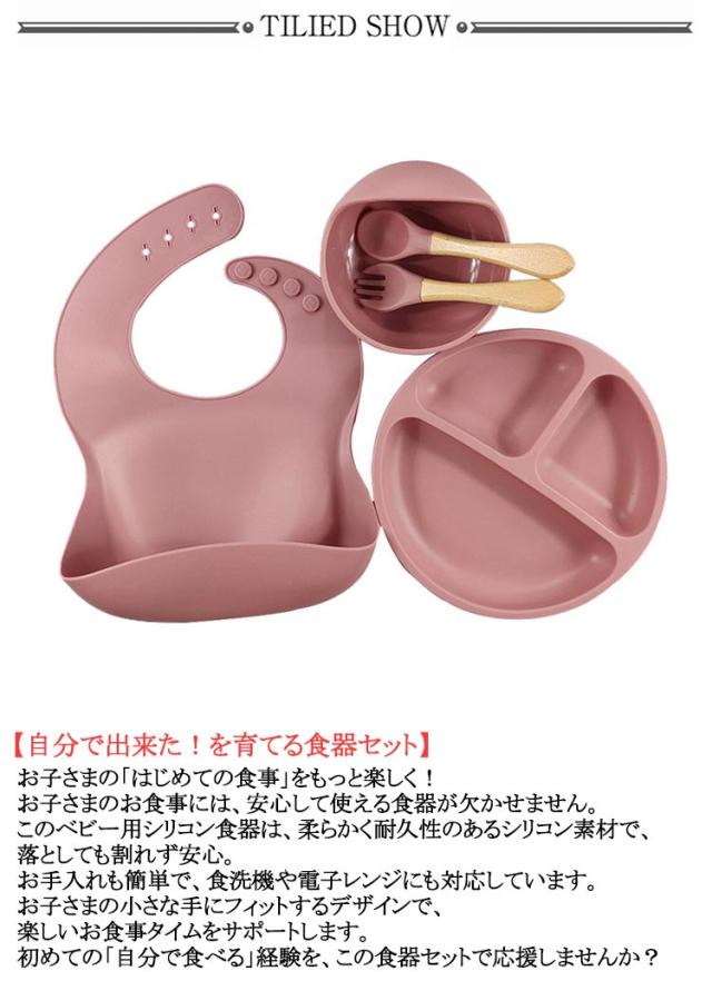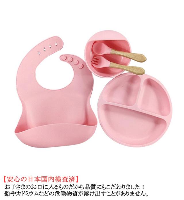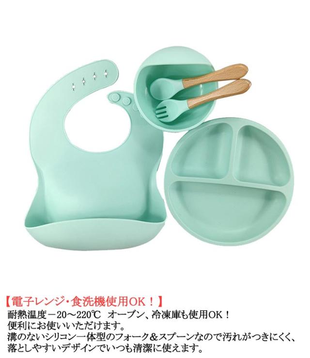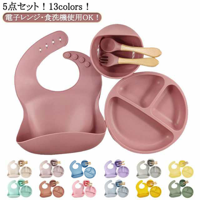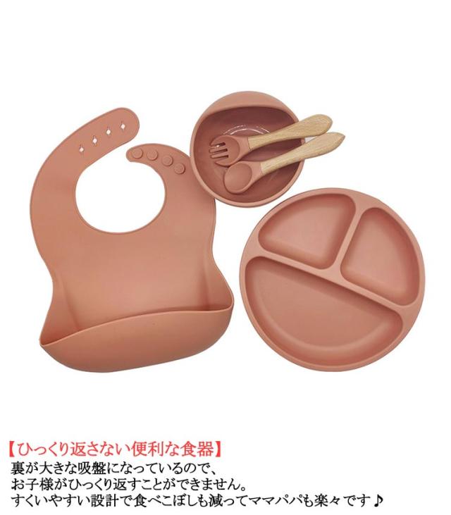 【5点セット】ベビー 食器 シリコン ひっくり返らない 食洗機対応 お食事プレート お 食事 エプロン キッズ スプーン フォーク 離乳食プレート 食器セット 食洗機対応 吸盤付き 女の子 男の子 お皿 離乳食 赤ちゃん 出産祝い 送料無料