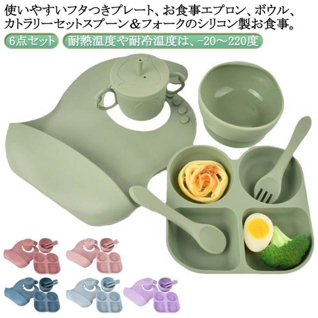 出産祝い 子供 食器セット 誕生日プレゼント 食器 セット お食い初め 食器 離乳食 ベビー食器 セット 6点(プレート/ボウル/スプーン/フォーク/エプロン/コップ) 子ども 食器 男の子/女の子 シリコン キッズ ギフト 送料無料