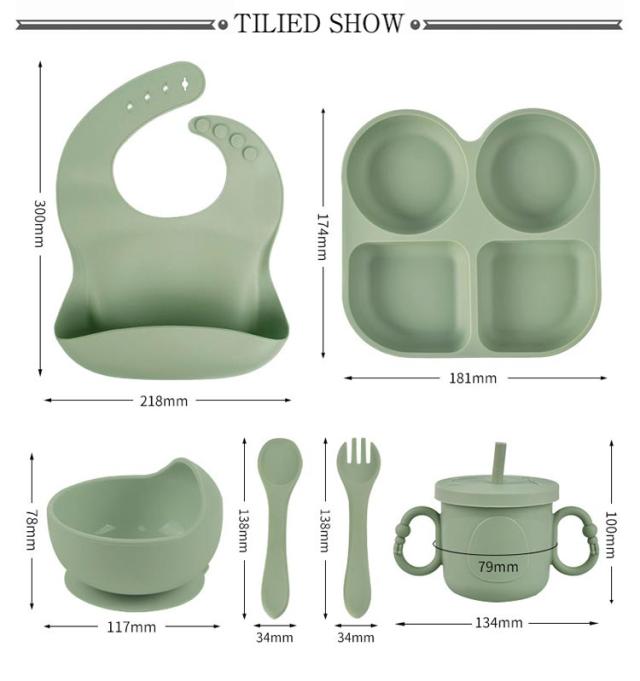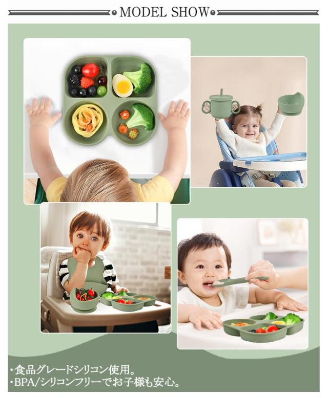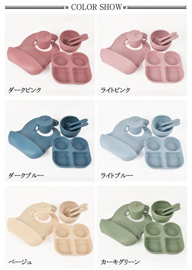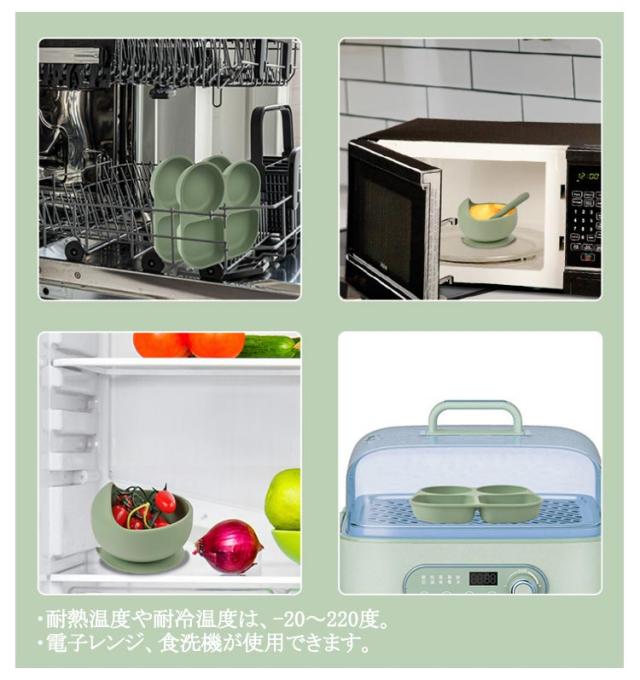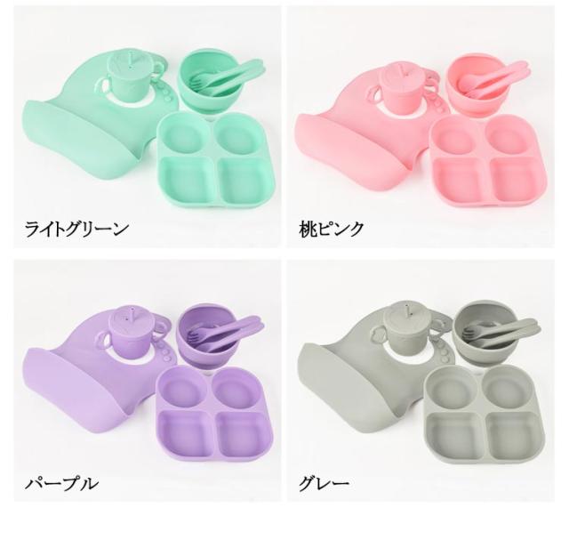 | 使いやすいフタつきプレート、お食事エプロン、ボウル、カトラリーセットスプーン&フォークのシリコン製お食事6点セット ・耐熱温度や耐冷温度は、-20〜220度。 ・電子レンジ、食洗機が使用できます。 ・食品グレードシリコン使用。 ・BPA/シリコンフリーでお子様も安心。 | |