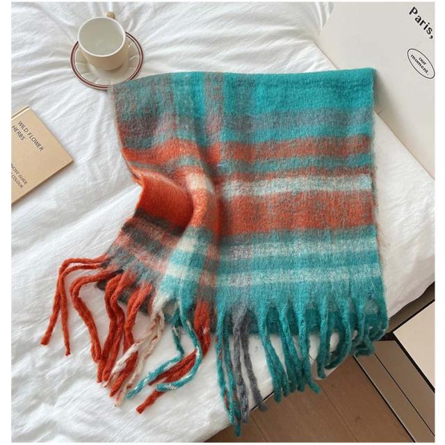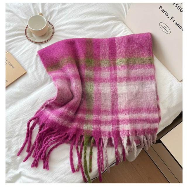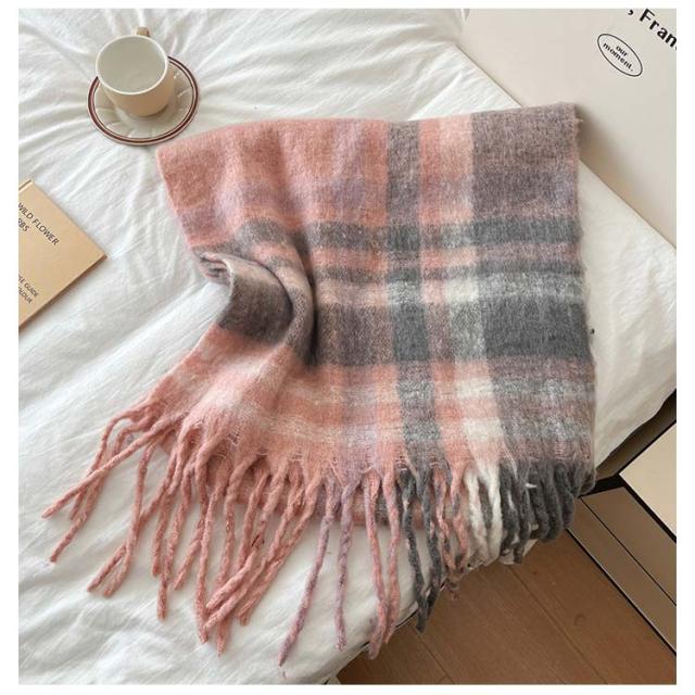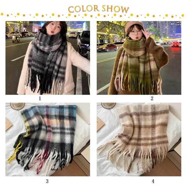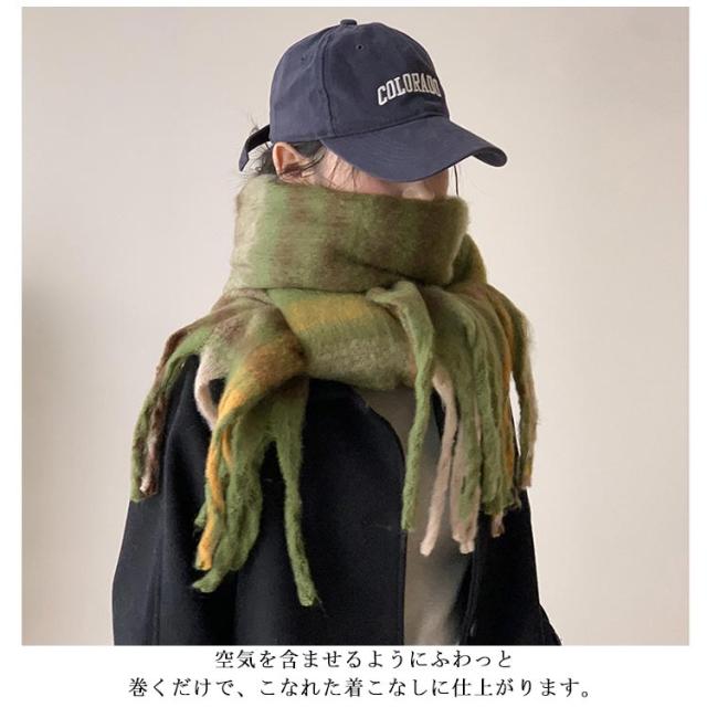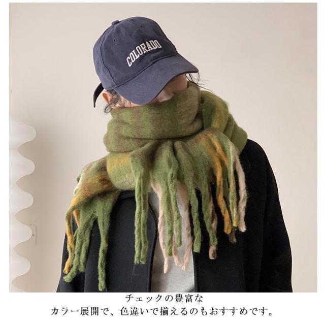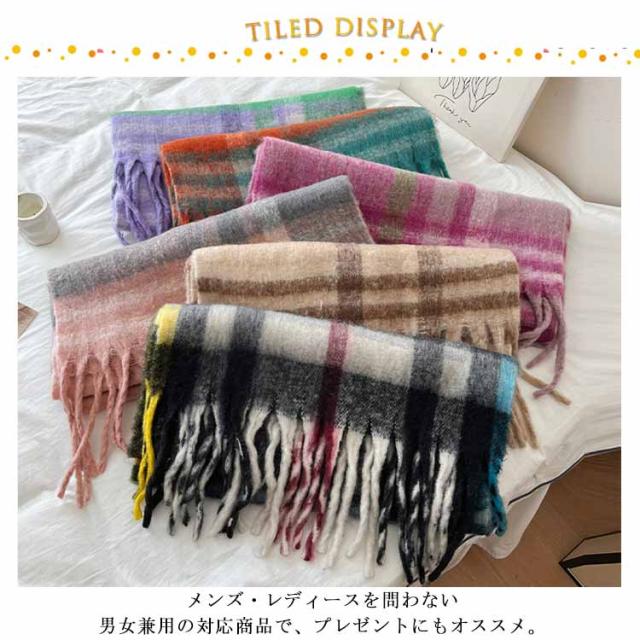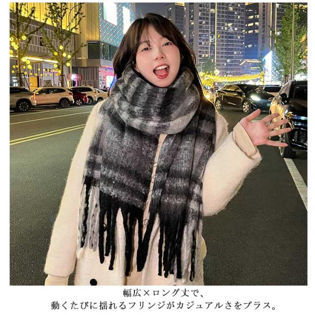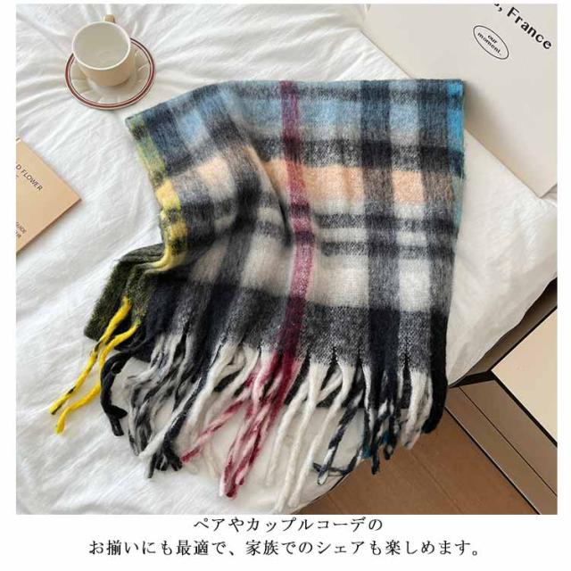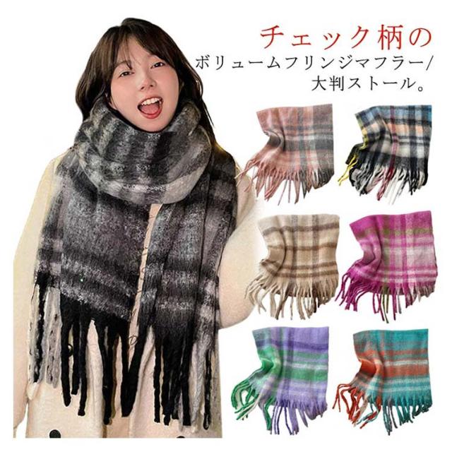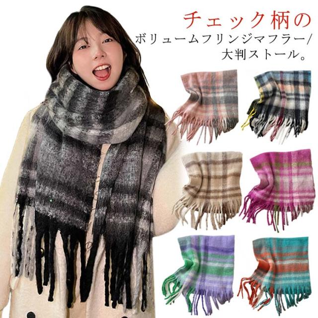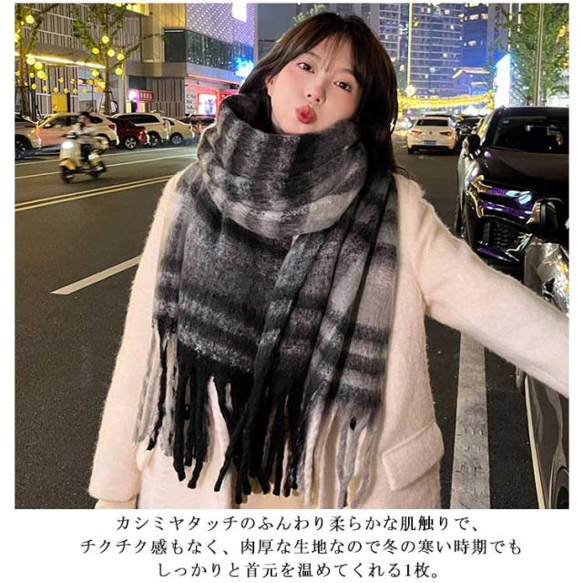 モヘア マフラー 厚手 大判 ストール レディース メンズ 大判ストール ボリューム チェック柄 おしゃれ ショール 羽織り ひざ掛け カシミヤ タッチ 防寒 保温 大人 可愛い チェックマフラー クリスマス 誕生日 プレゼント ギフト 通勤 通学 旅行 秋冬 韓国風 【送料無料】