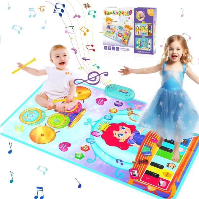 【3in1多機能ピアノ&ドラムおもちゃ】このプリンセスをデザインしたミュージックマットはピアノ側には8鍵盤、8種類の動物音、6種類の楽器音(ピアノ、バイオリン、トランペット、アコーディオン、木琴、ギター)を搭載しています。ドラム側はクラッシュシンバル×2、スネアドラム×1、タム×3から構成され、ドラムスティックも2本付属しています。子供だけでなく、親子向けの音楽おもちゃとしてもおすすめ!